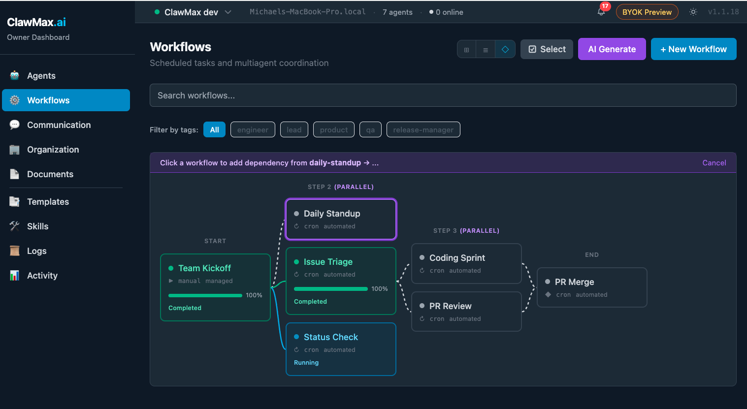 Next, we want to turn this from one hackathon workflow into a reusable family of multimodal org templates. That means more Senso-backed workflows for visual QA, customer signal routing, and real- world operational monitoring, plus better workflow execution visibility, cleaner dependency rendering, and stronger autonomous handoff loops. We also want to publish the ClawMax Senso adapter skills so other teams can use the same pattern: multimodal evidence in, shared memory preserved, and coordinated agent action out.