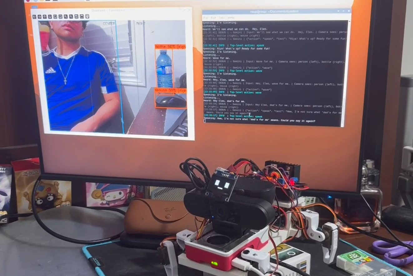 Cleo is our answer. A low-cost, open-source, AI-powered quadruped robot built in 3 days for under $100. Designed from the ground up to be replicated, remixed, and improved by anyone with a 3D printer and a Raspberry Pi. A boilerplate for the next generation of autonomous machines, built in Canada, to keep Canada in the race.
