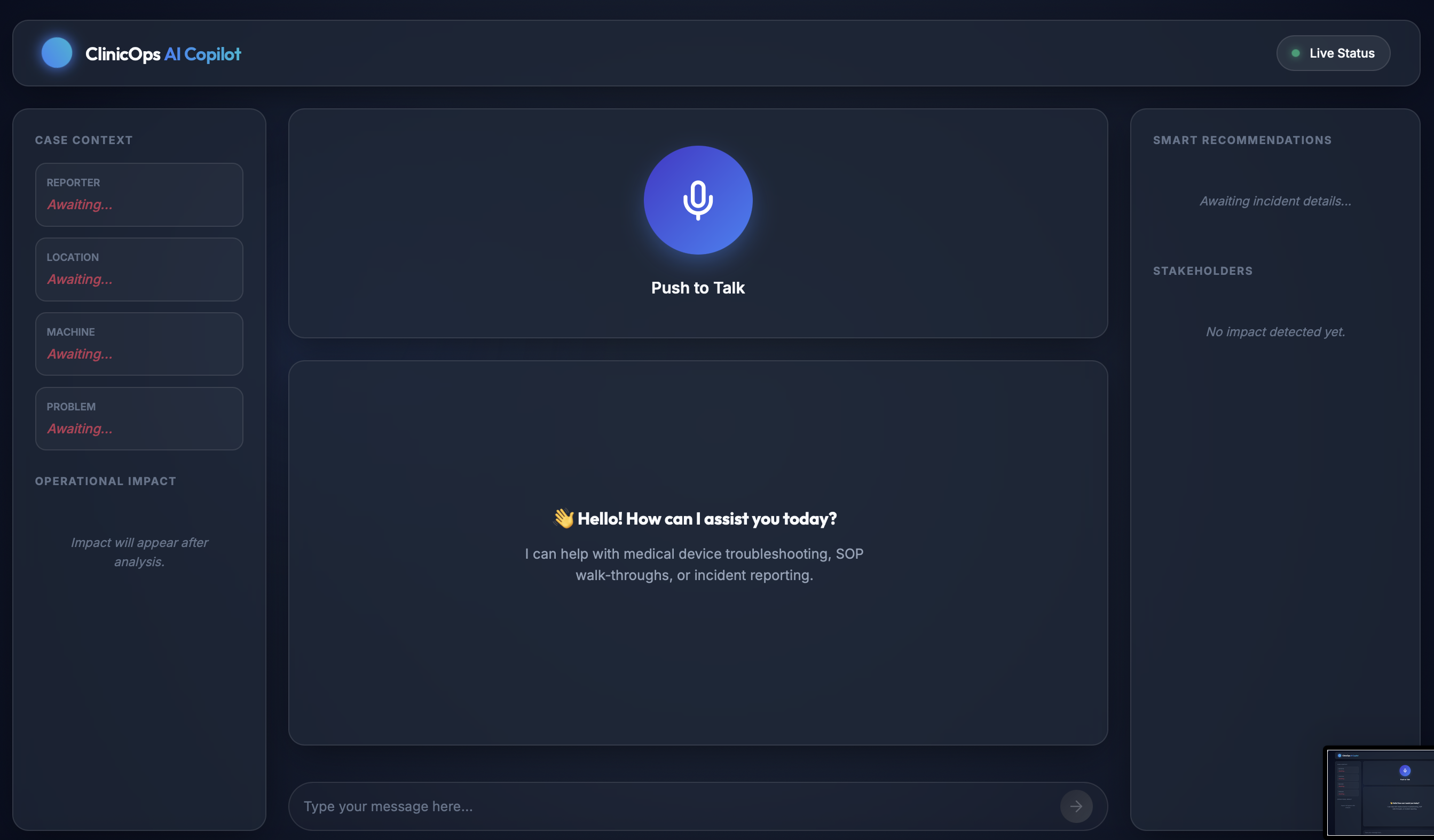 ClinicOps-Copilot combines Retrieval Augmented Generation (RAG) with reasoning to transform dense operational documentation into practical troubleshooting guidance.