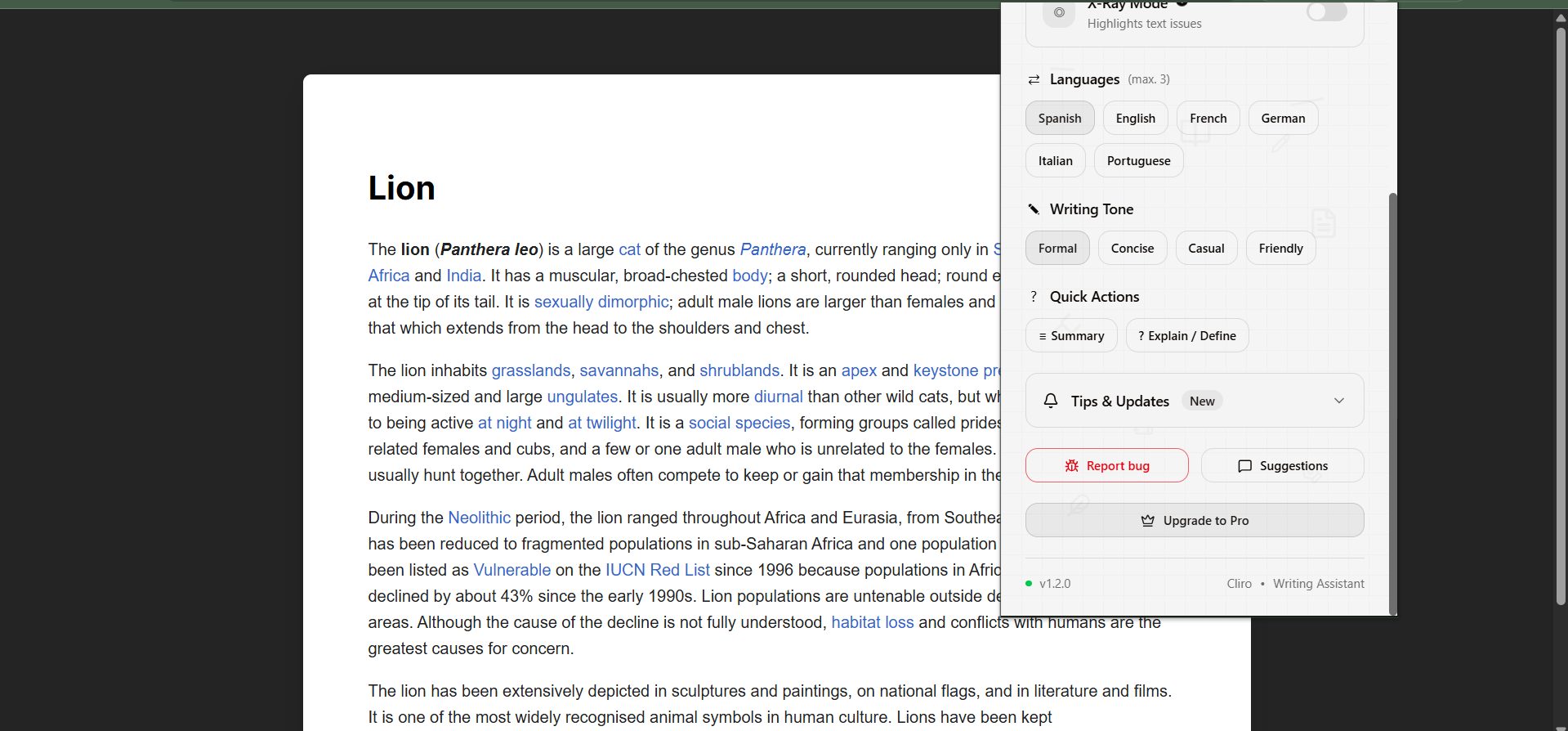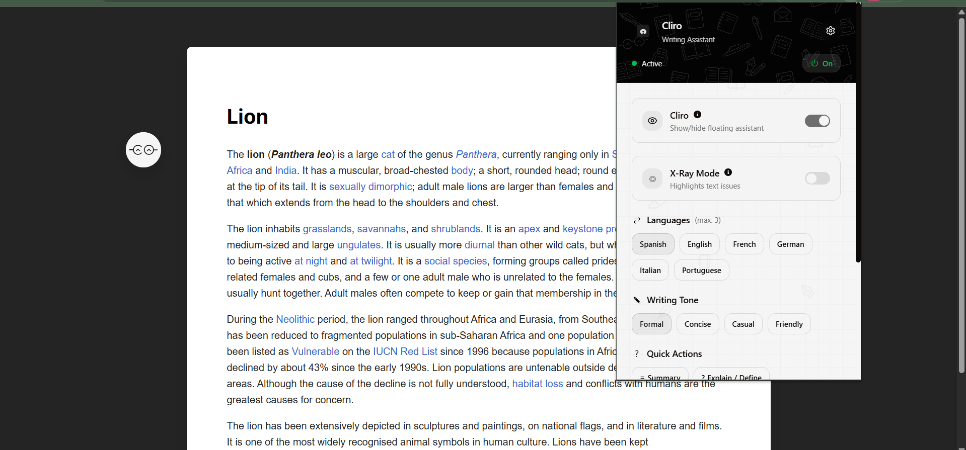 Cliro was born out of the necessity to learn with current tools but without relying on them to think for us. Cliro is not like any other AI that doesn't care about the user understanding. Cliro is a writing companion, designed to encourage creativity by helping the user only after he already starts thinking, when words are hard to find. With a simple click on any selected text (whether you wrote it or not), Cliro provides immediate assistance to: summarize, explain, rewrite and translate. And that's how Cliro not only encourages you to read or write, but to analyze beforehand, so the user can know specifically where does he need help.