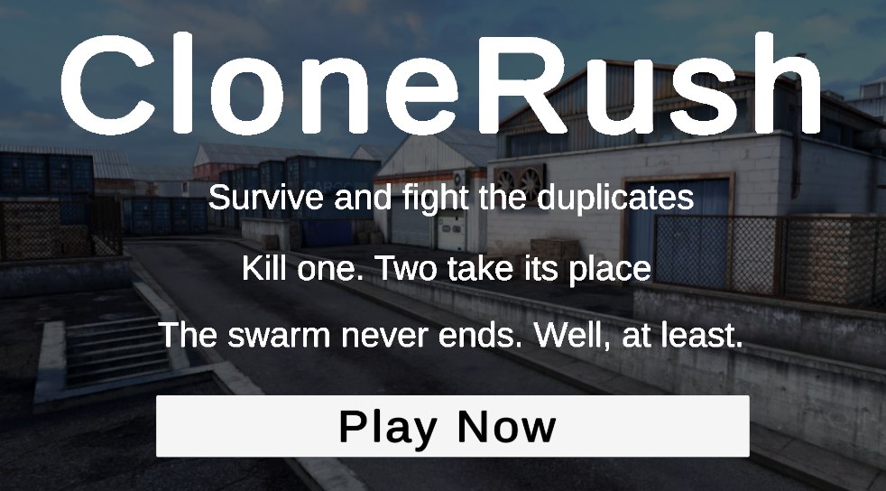 We garnered inspiration for our project through ideas of overwhelming escalation through the cloning of enemies/mobs--what happens when enemies don't simply respawn, but replicate when they do so, inspired by wave-based shooters and sci-fi cloning tropes where the threat does not lie within the hands of a single power enemy, but an unremitting, evergrowing swarm. Hence, amid the prompt for this hackathon being "Cloning", we decided to delve into how cloning could serve more than a figment of our future or a narrative theme, but rather a core pressure mechanic defining the moment-to-moment gameplay of CloneRush. Traditional shooters often reward aggressive play, but in CloneRush, every second of hesitation can lead to exponential difficulty. This inspired us to design gameplay that constantly pressures the player to move, react, and adapt, reinforcing the sense of urgency and panic that naturally arises from uncontrollable replication.