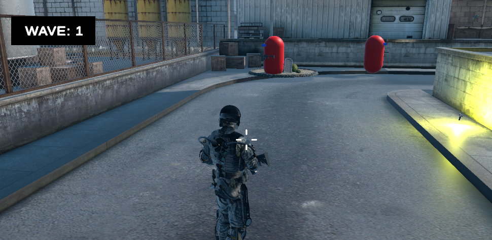 Major Game UI including Healthbar, Ammo Coutner, Wave Number, and AI enemies facing the player when in the first person "aim" (shift) mode.