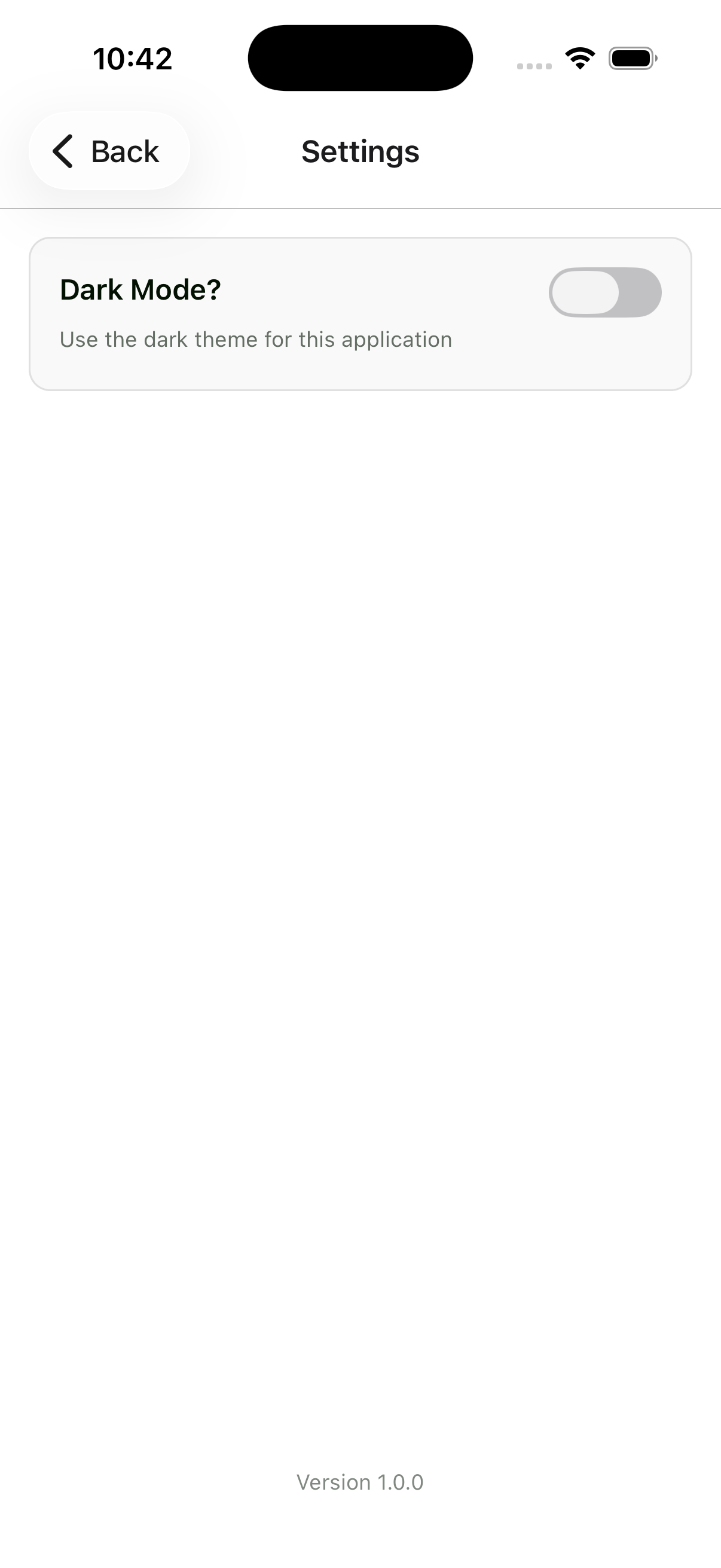 Setting page (Light mode)