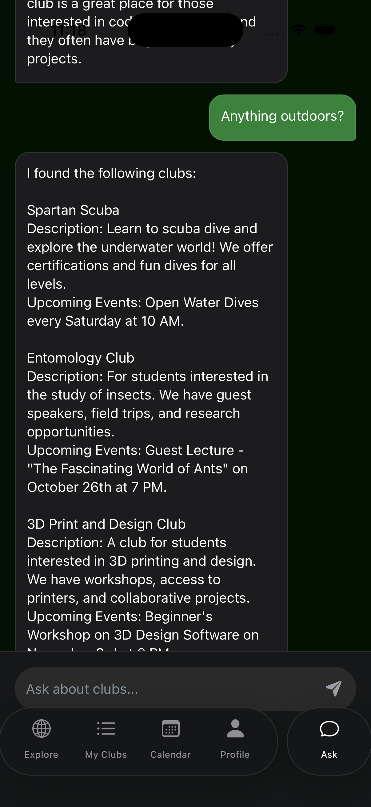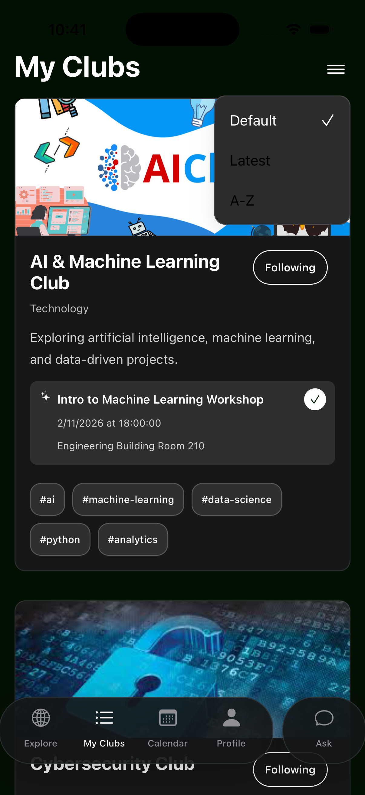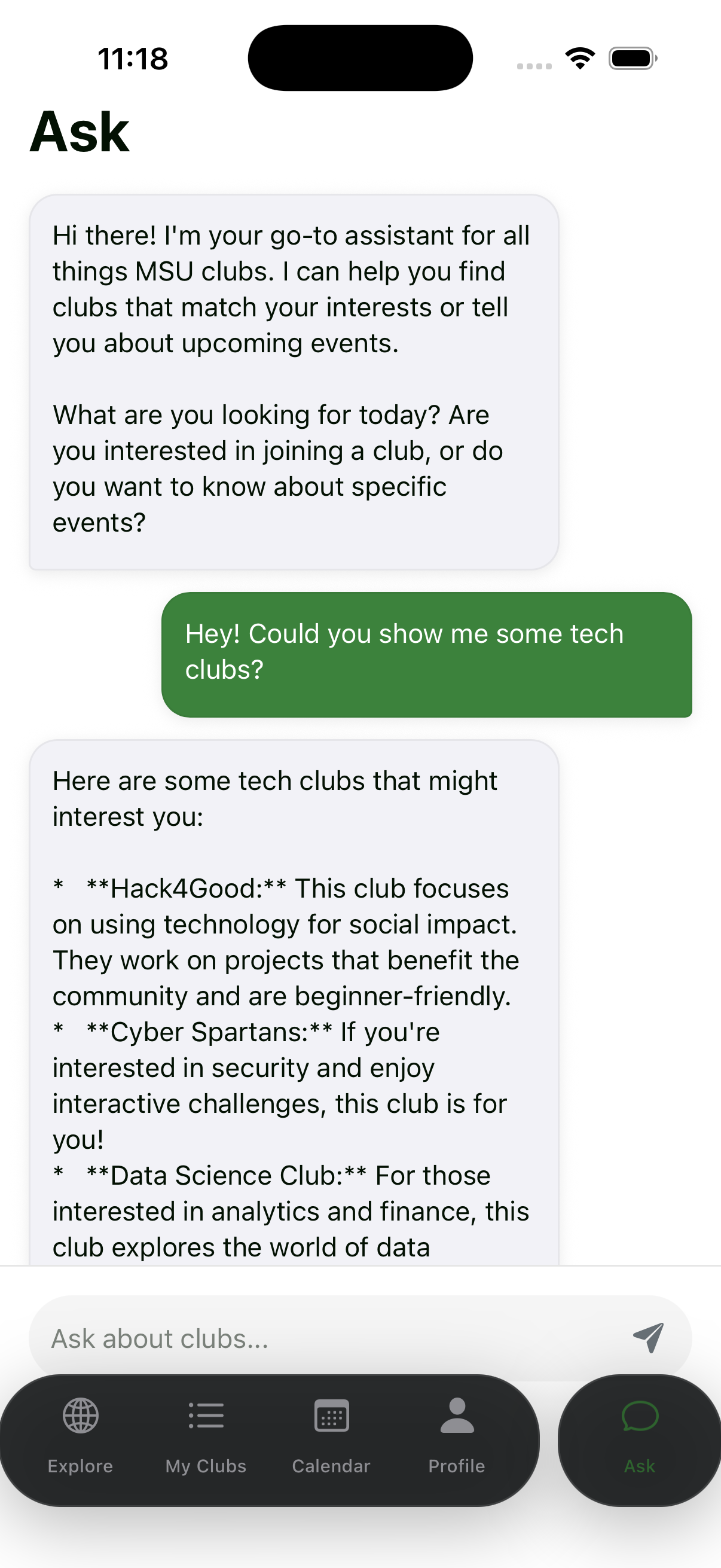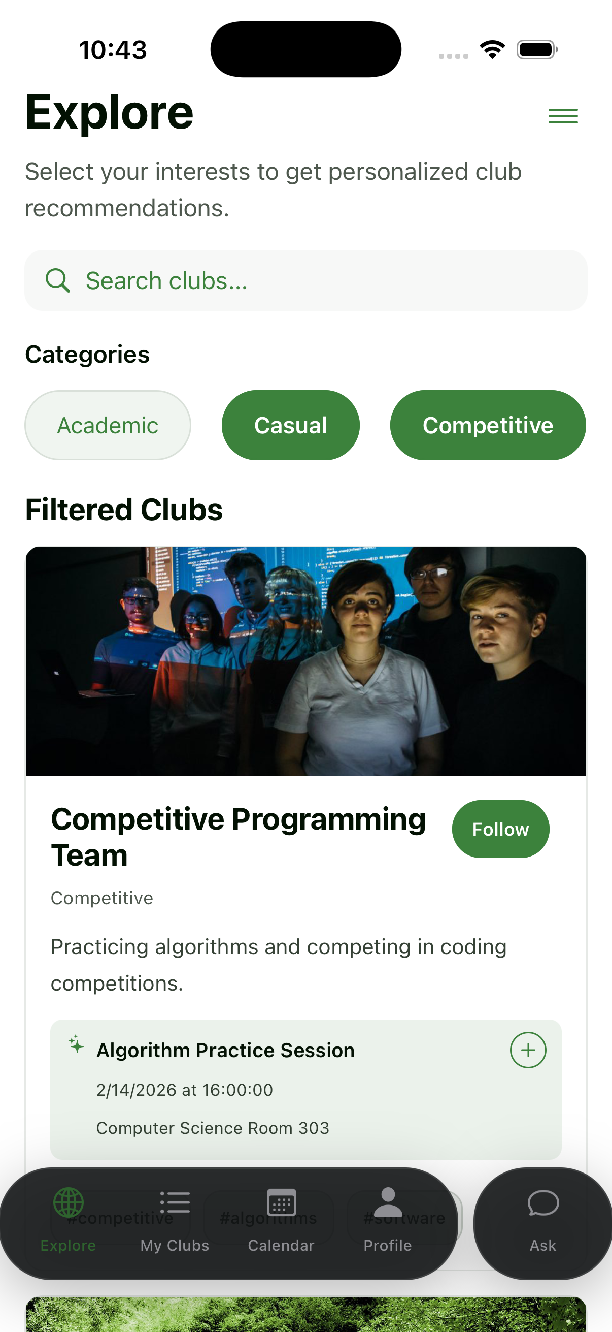 At its heart, Clubs is about belonging. It’s not just a tool to browse organizations. It’s a guide for students who want to explore, connect, and find the spaces where they feel most at home. By making discovery easier and more personal, we hope to turn curiosity into community, one club at a time.