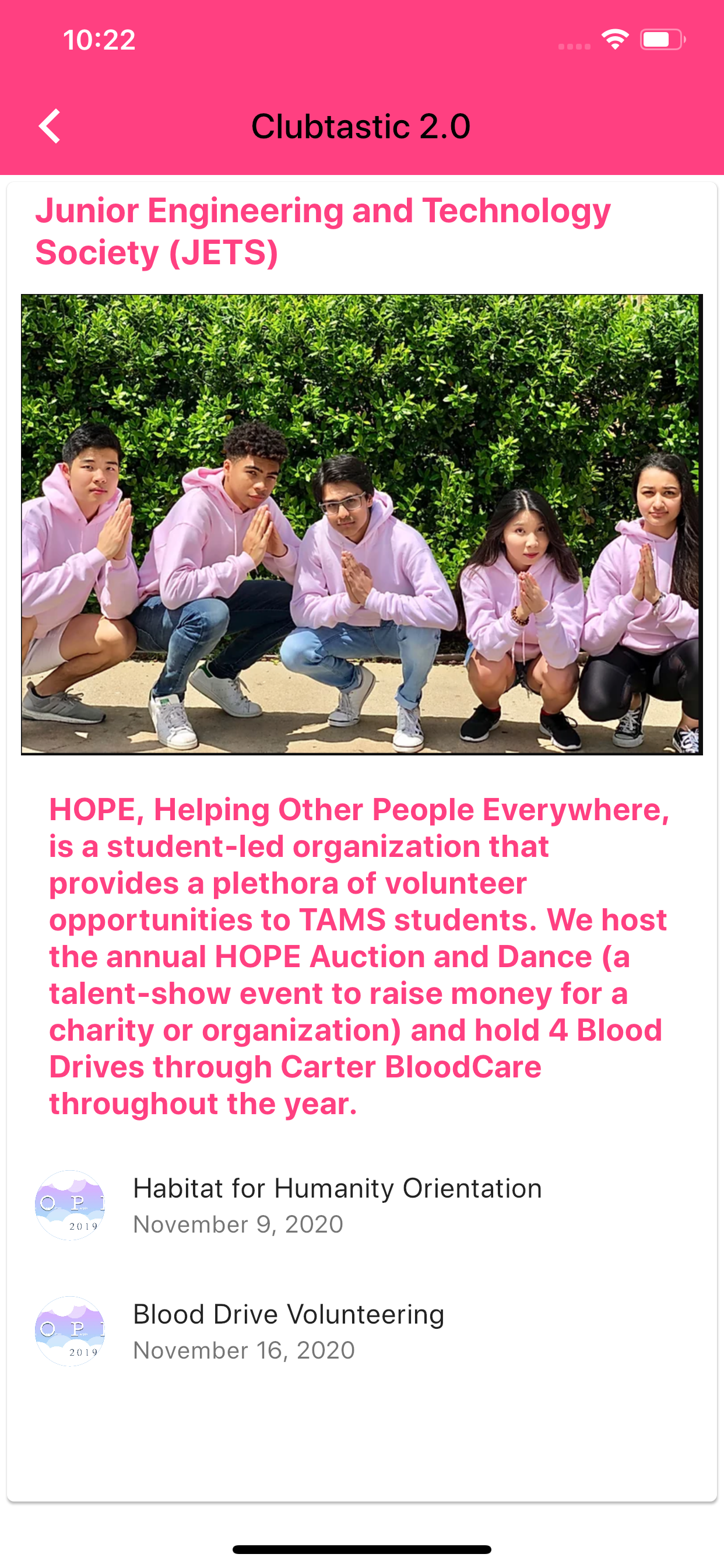Clubtastic 2.0 allows users to explore some of the major clubs at TAMS while also allowing them to view upcoming volunteering and competition opportunities as aforementioned.