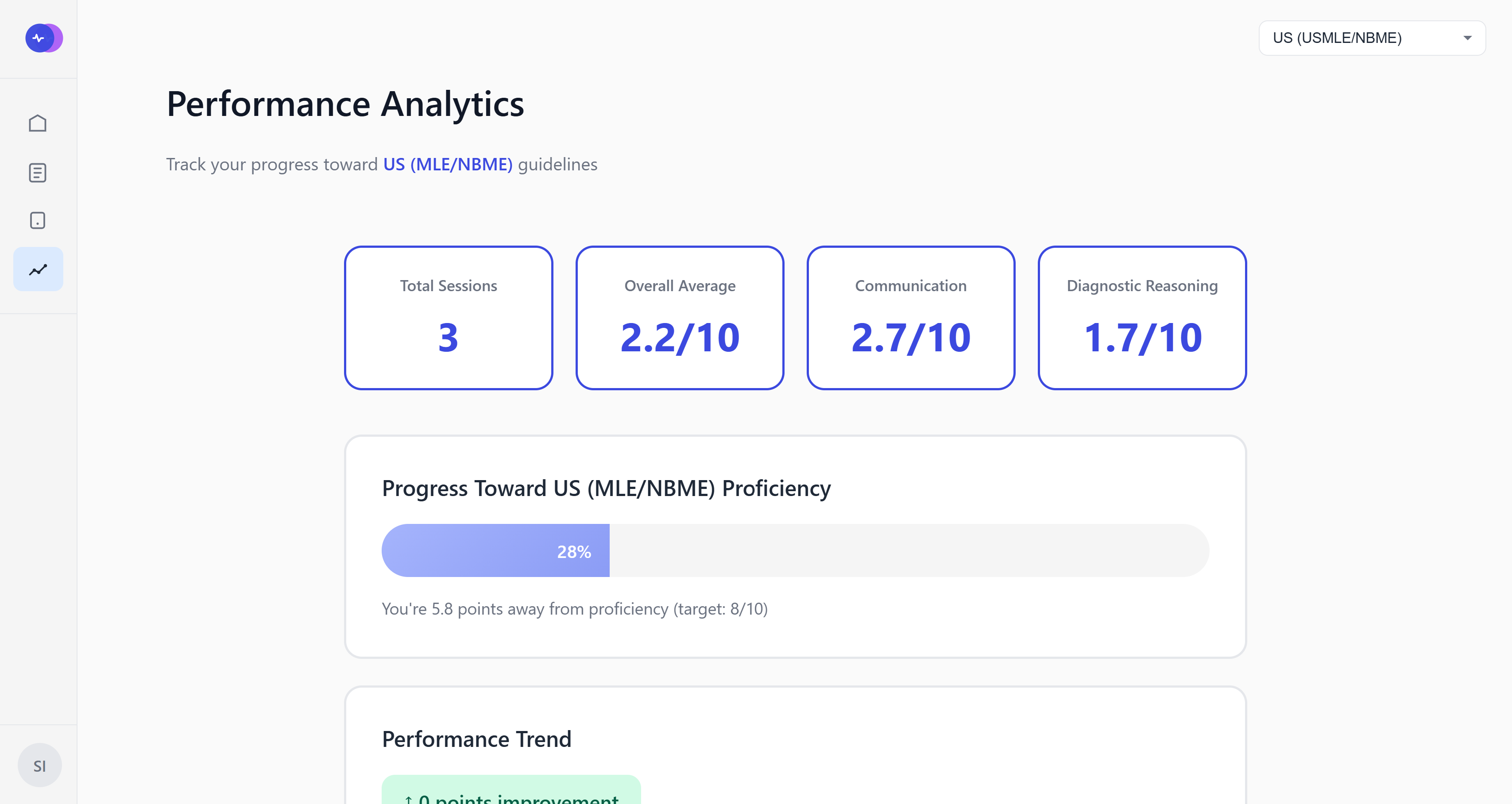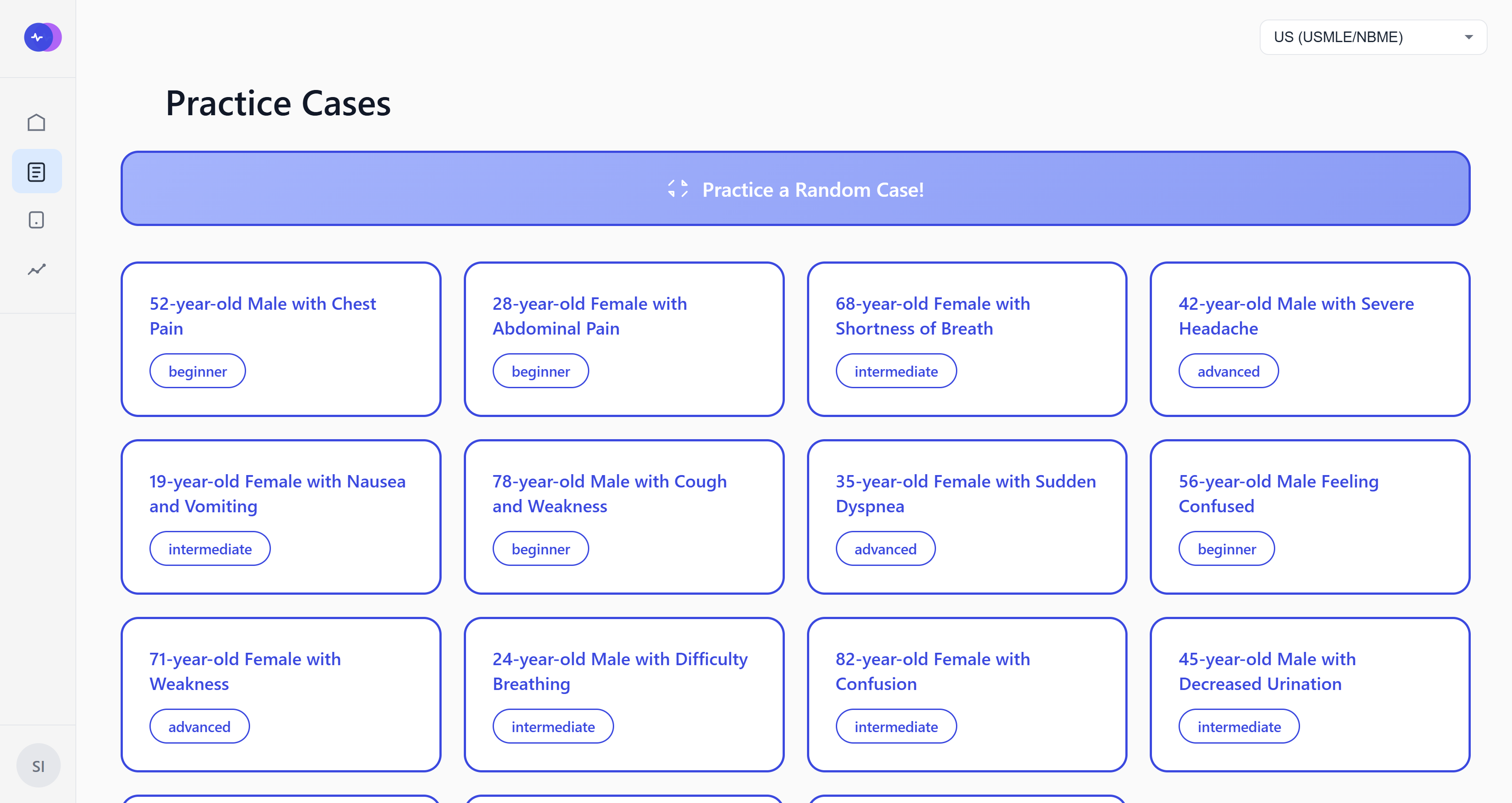 - Receive instant feedback on diagnostic accuracy, empathy, and communication style.