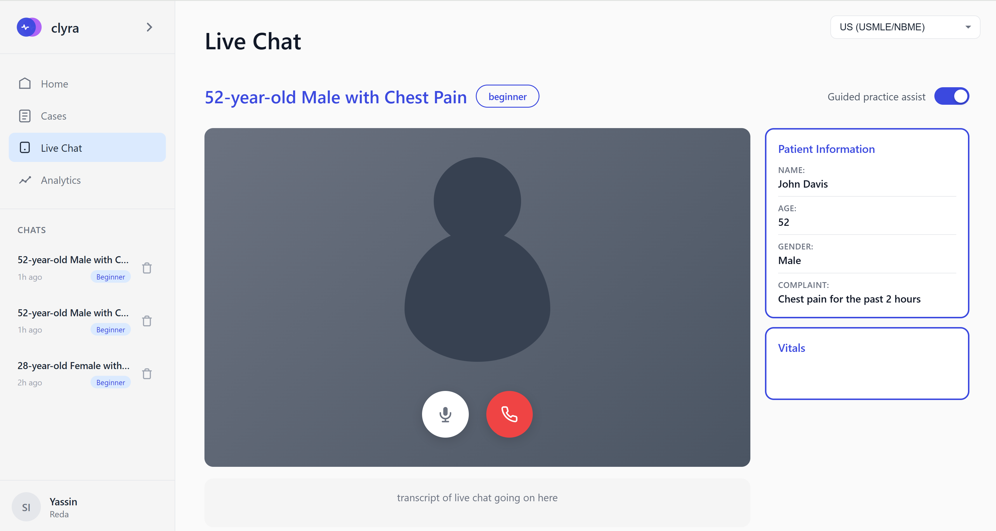Clyra simulates natural, lifelike patient interactions using generative AI. Students can: