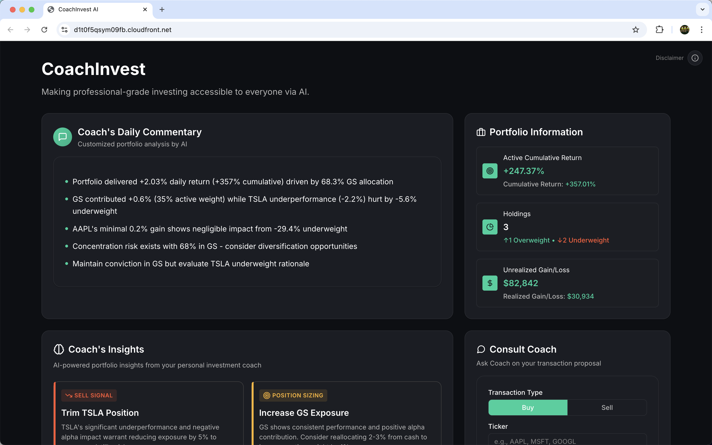 We decided to solve the knowledge gap directly: instead of a generic course, provide real‑time, active portfolio‑management guidance that can be everyone's trusted coach.