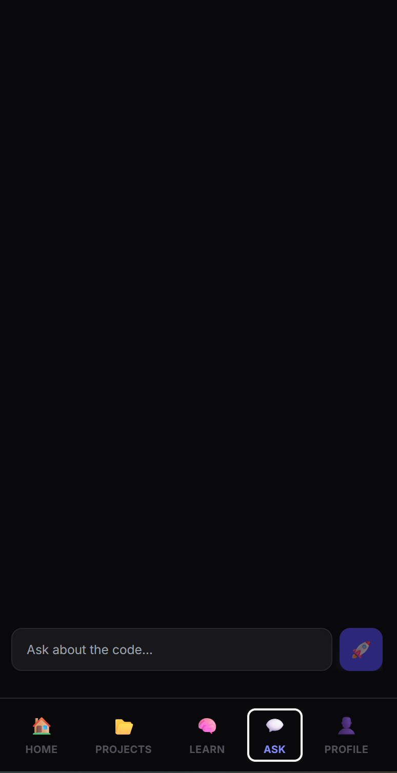 🧠 Context-Aware Mentorship: An AI chat interface grounded in the specific project's context—ask "Where is authentication handled?" and get a precise answer pointing to the exact file.