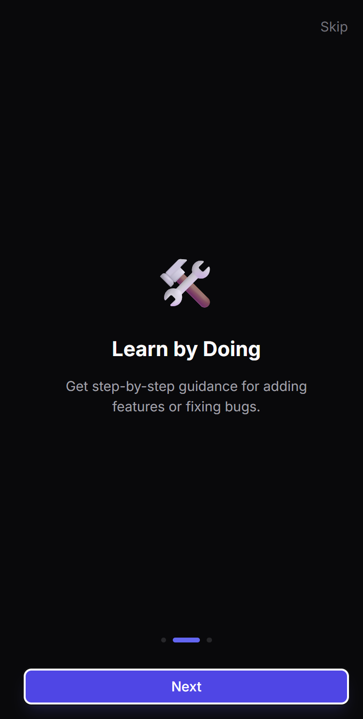 📝 Learn by Task: The AI generates starter tasks based on the codebase complexity to help users ramp up gradually.