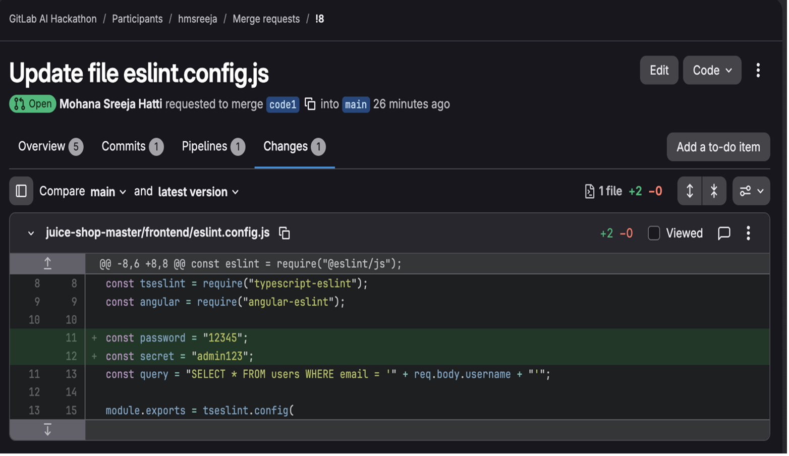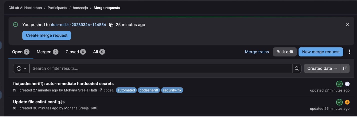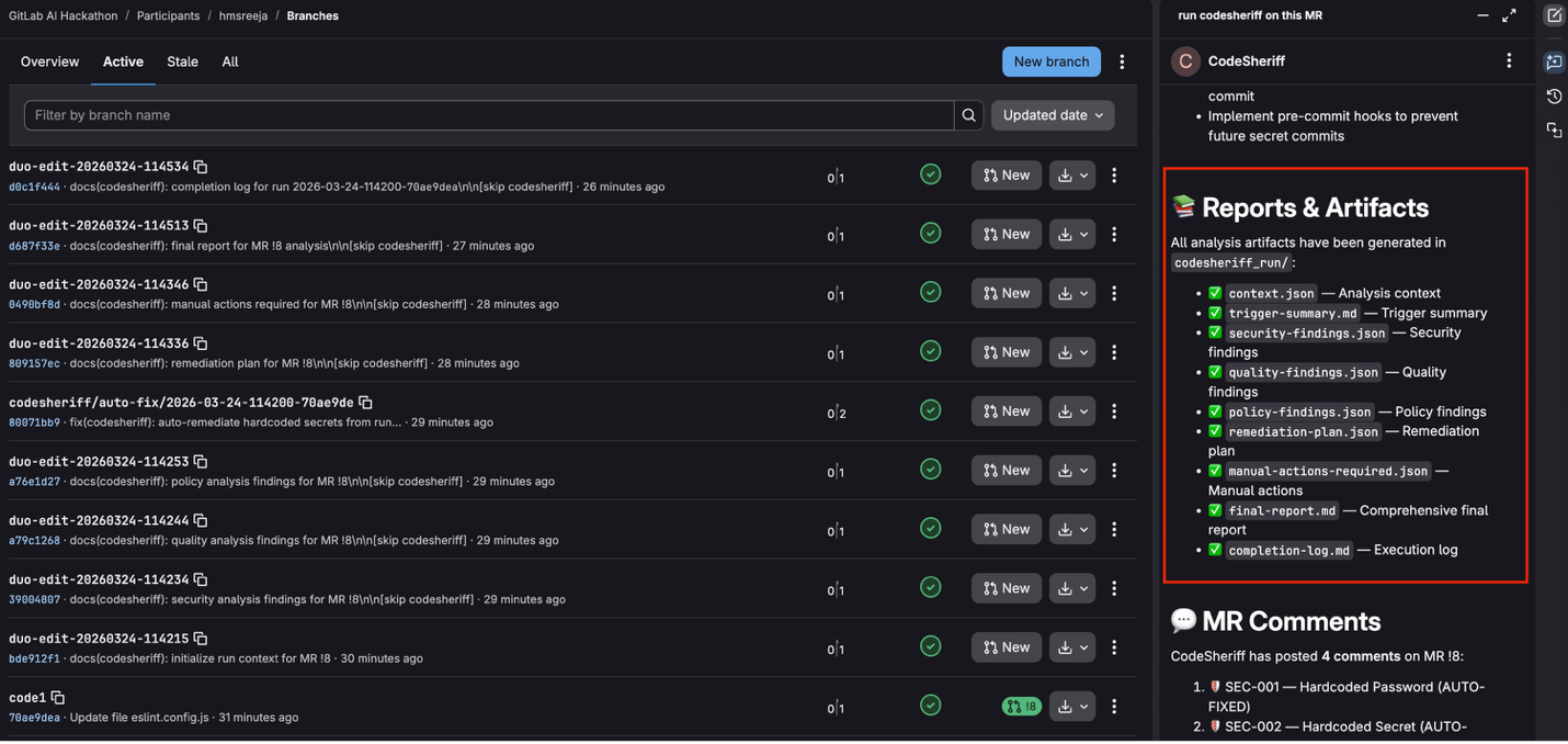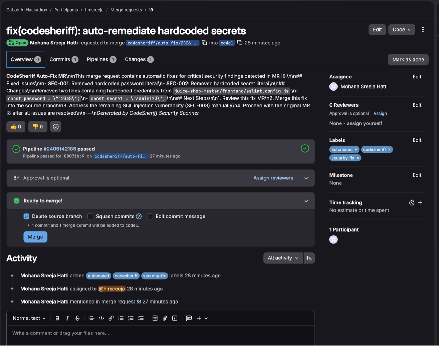 Codesheriff is an AI-powered security agent integrated with GitLab.