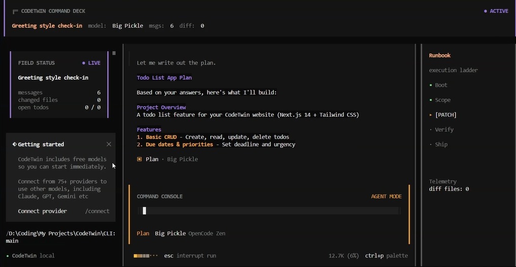 CodeTwin is a coding agent that runs in your terminal and actually listens to you.