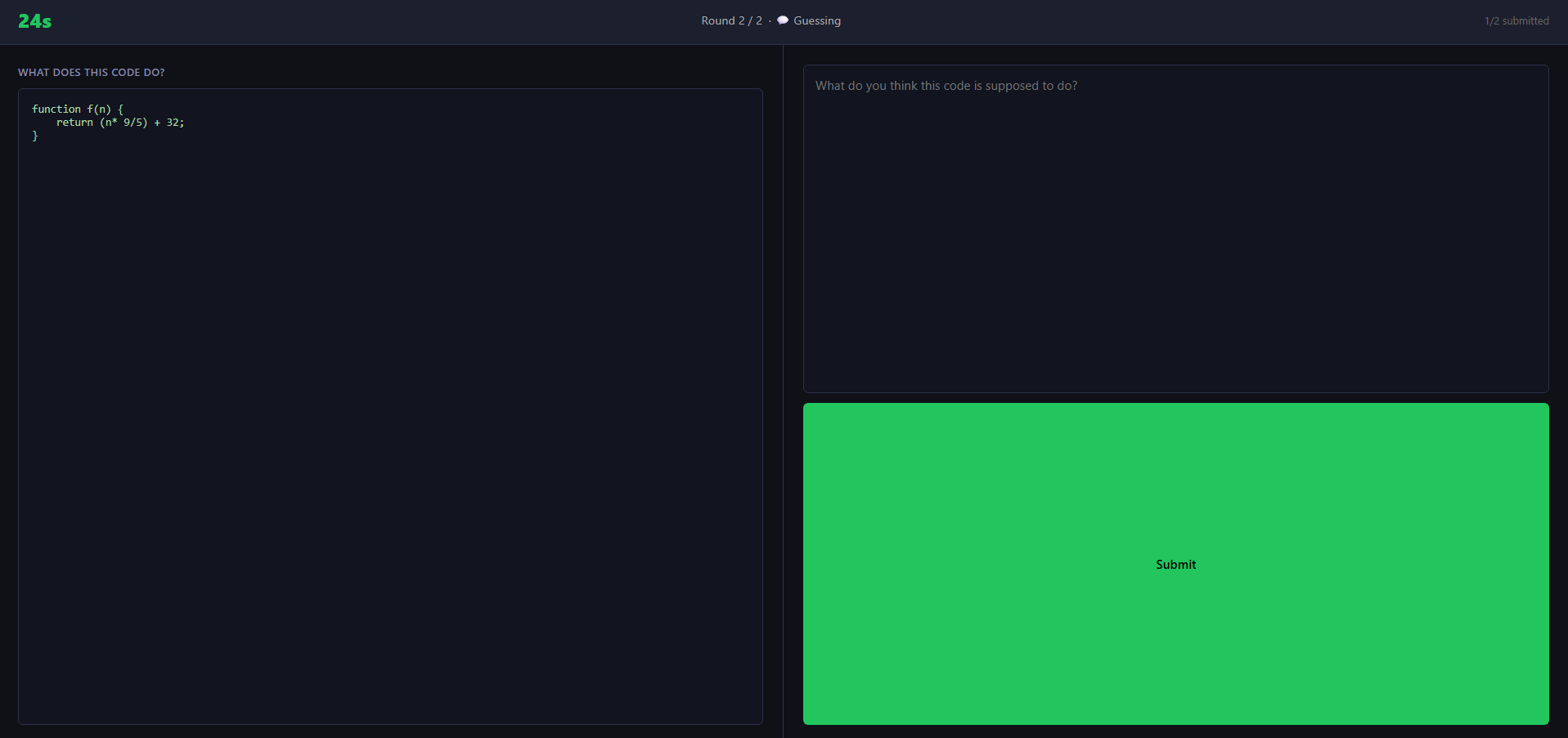 We plan to implement another game mode and more accurate difficulty selection so more people can enjoy the website. Additionally, we intend to add code funcationality beyond just JavaScript.