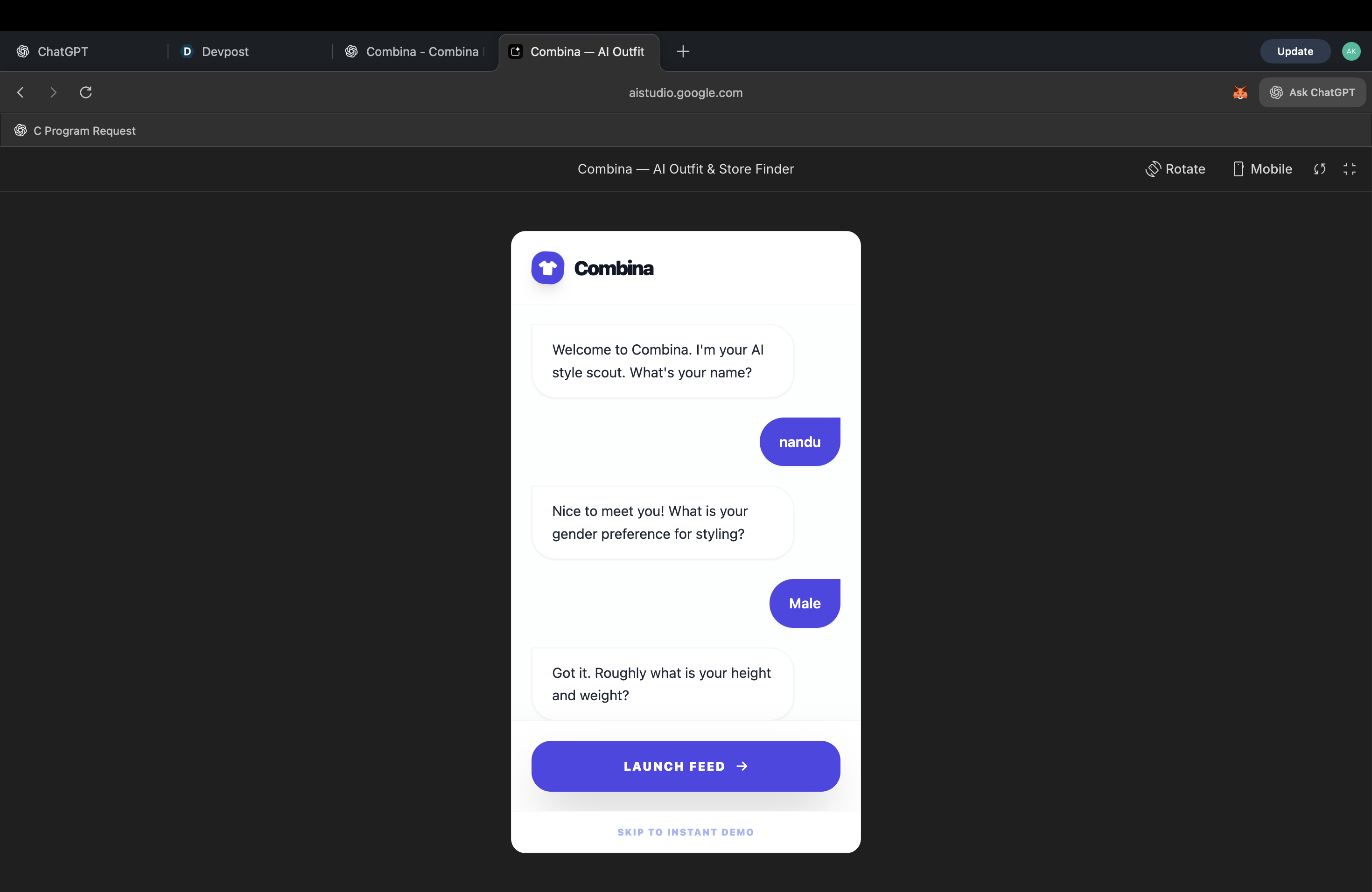Combina was built as a multi-step AI system, not just a simple chatbot.