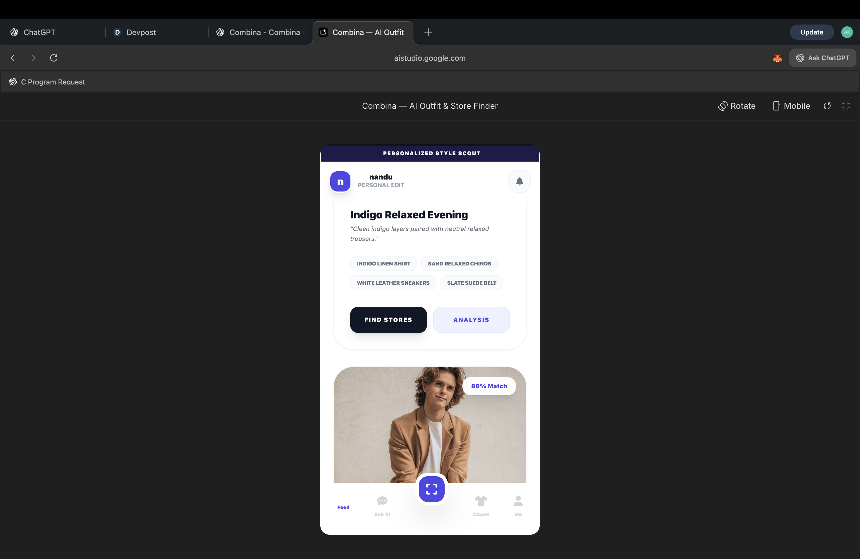 We wanted to solve this problem by building an AI system that thinks like a personal stylist — one that understands the user first, then guides them toward outfits and nearby products that actually suit them.