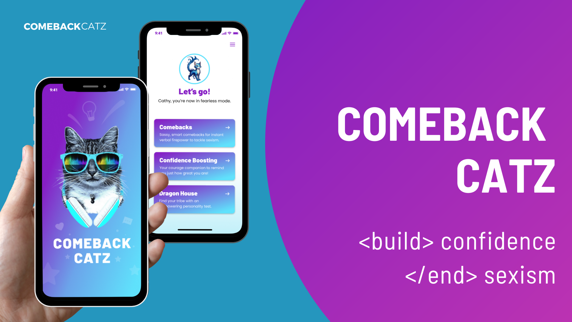 Comeback CatZ is a gamified, AI-powered app that provides users with tools to tackle everyday sexism with quick, witty responses. The app offers personalised guidance and everyday life scenarios, allowing users to train witty responses to sexist comments and tackle the imposter syndrome. All while part of a global community where individuals can share stories, celebrate wins, and encourage one another in their journey toward gender equity. Wait there's more! Take part in the global community ending sexism in a totally fun way through the app's fully gamified approach where you get sorted into Dragon Houses based on your character type, duel other houses, and grow your comeback kitten to a comeback dragon slaying sexism and the imposter syndrome everywhere you go!