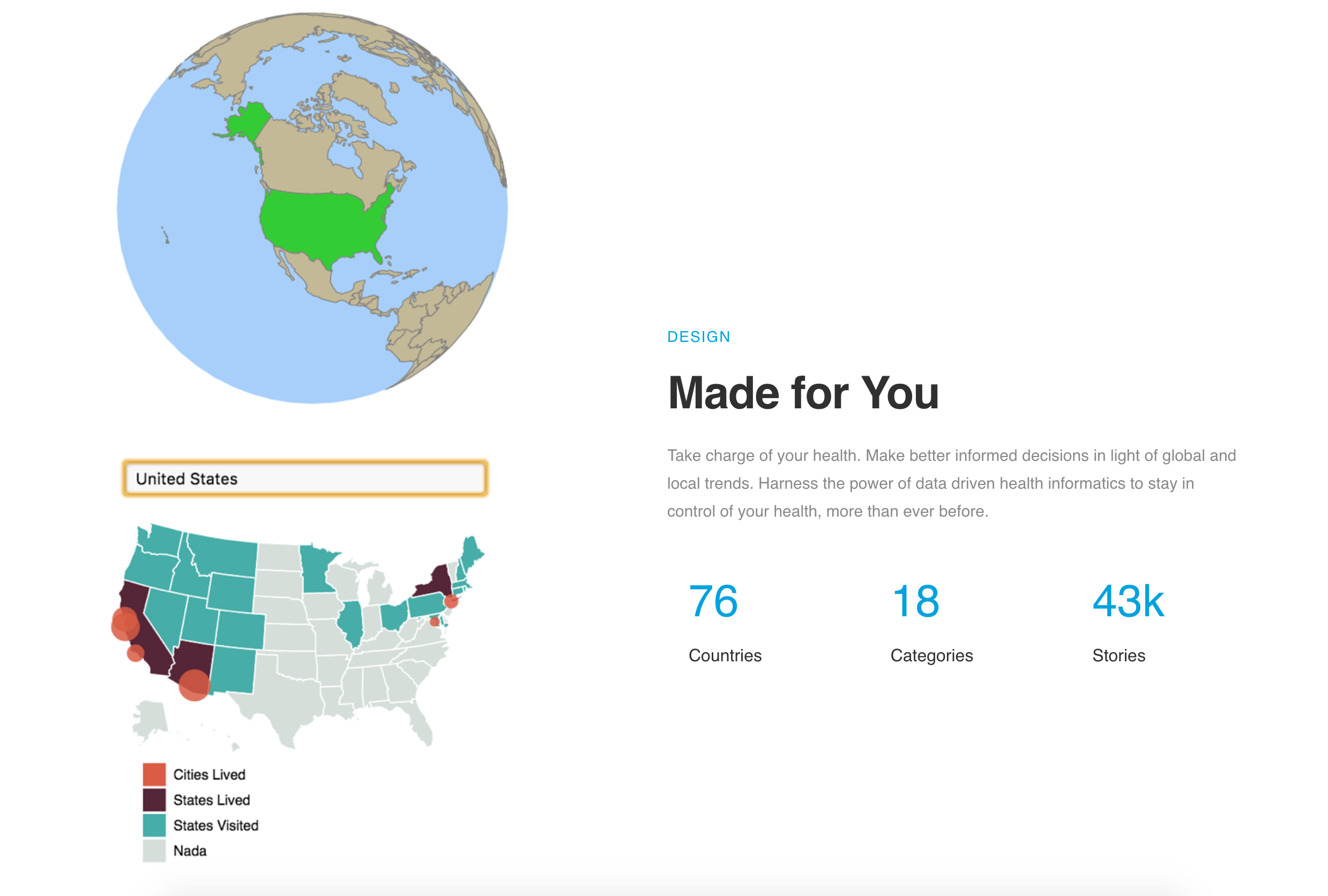 Made for You Take charge of your health. Make better informed decisions in light of global and local trends. Harness the power of data driven health informatics to stay in control of your health, more than ever before.