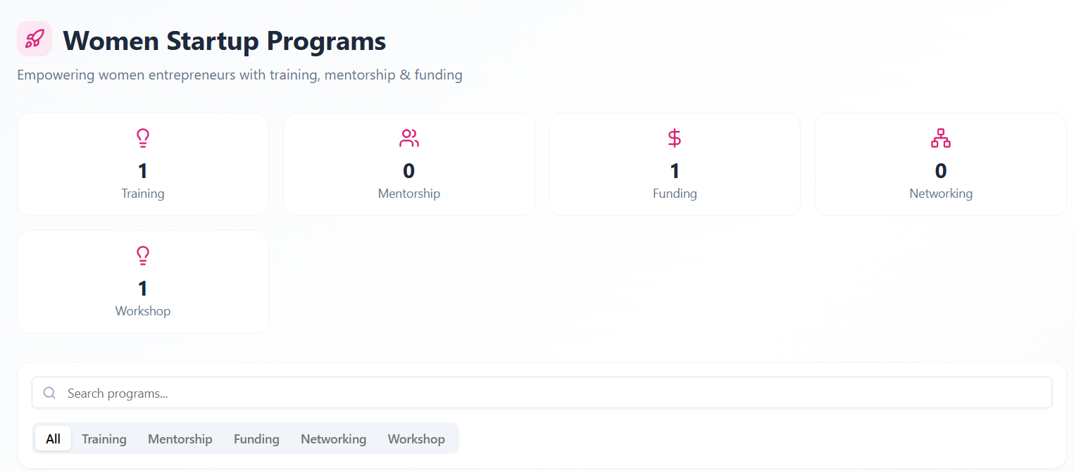 - Admin dashboard & operations • Ticket management: Filtering, assignment, SLA alerts, CSV export. • Analytics & reports: Complaint trends, course uptake, women entrepreneurship dashboard. • Notifications & broadcasts: Compose geo-targeted alerts (health, events). • User management: Role approvals for trainers, employers, municipal staff.