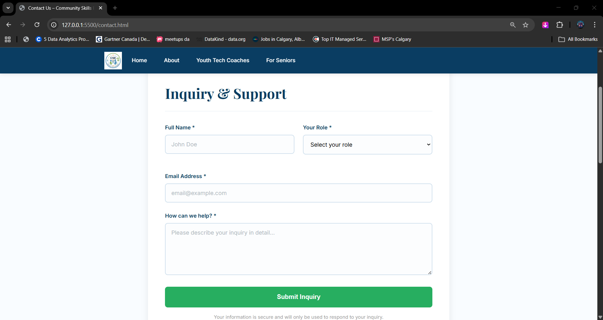 My teammate and I were inspired to create Community Skills Exchange to bridge the gap between youth and seniors, helping seniors gain digital confidence while giving youth meaningful, paid experience.