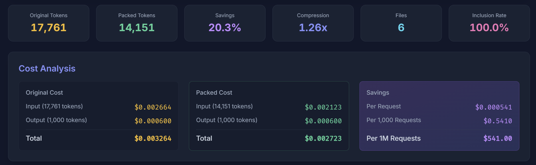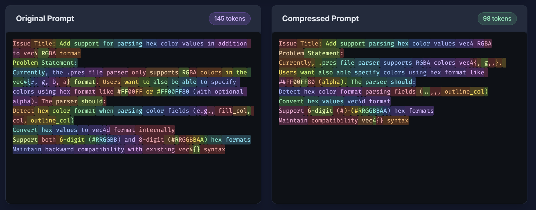 We are very proud of the novelty of our approach. Our code-specific compression algorithms combine ideas across multiple programming domains to achieve our compression ratios. Additionally, we are proud of the research aspect of this project. We had to delve into the emerging research field of semantic token compression for LLMs and implement their ideas for our product.