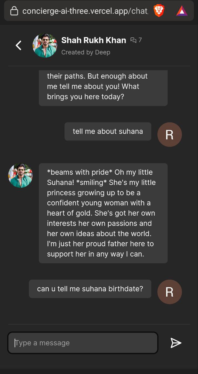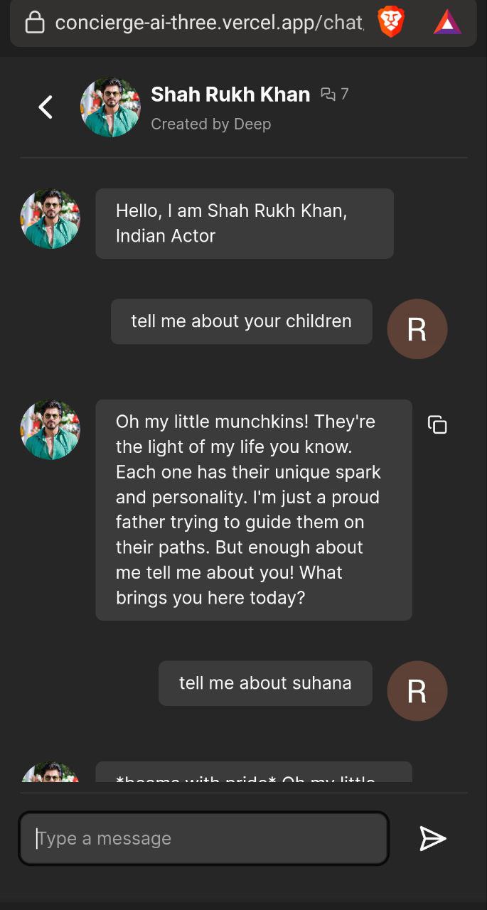 The inspiration for Concierge AI came from the growing demand for AI models that could engage in lifelike conversations, simulating real personalities. Traditional AI often lacked the ability to provide personalized and engaging interactions, and we saw an opportunity to create a solution that allows users to shape their own AI models, making conversations truly unique.