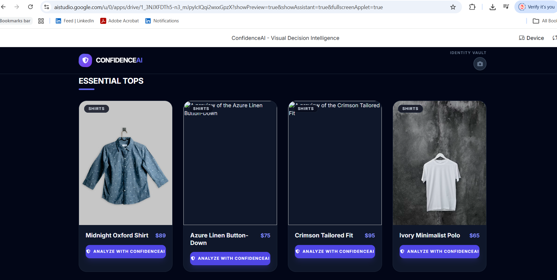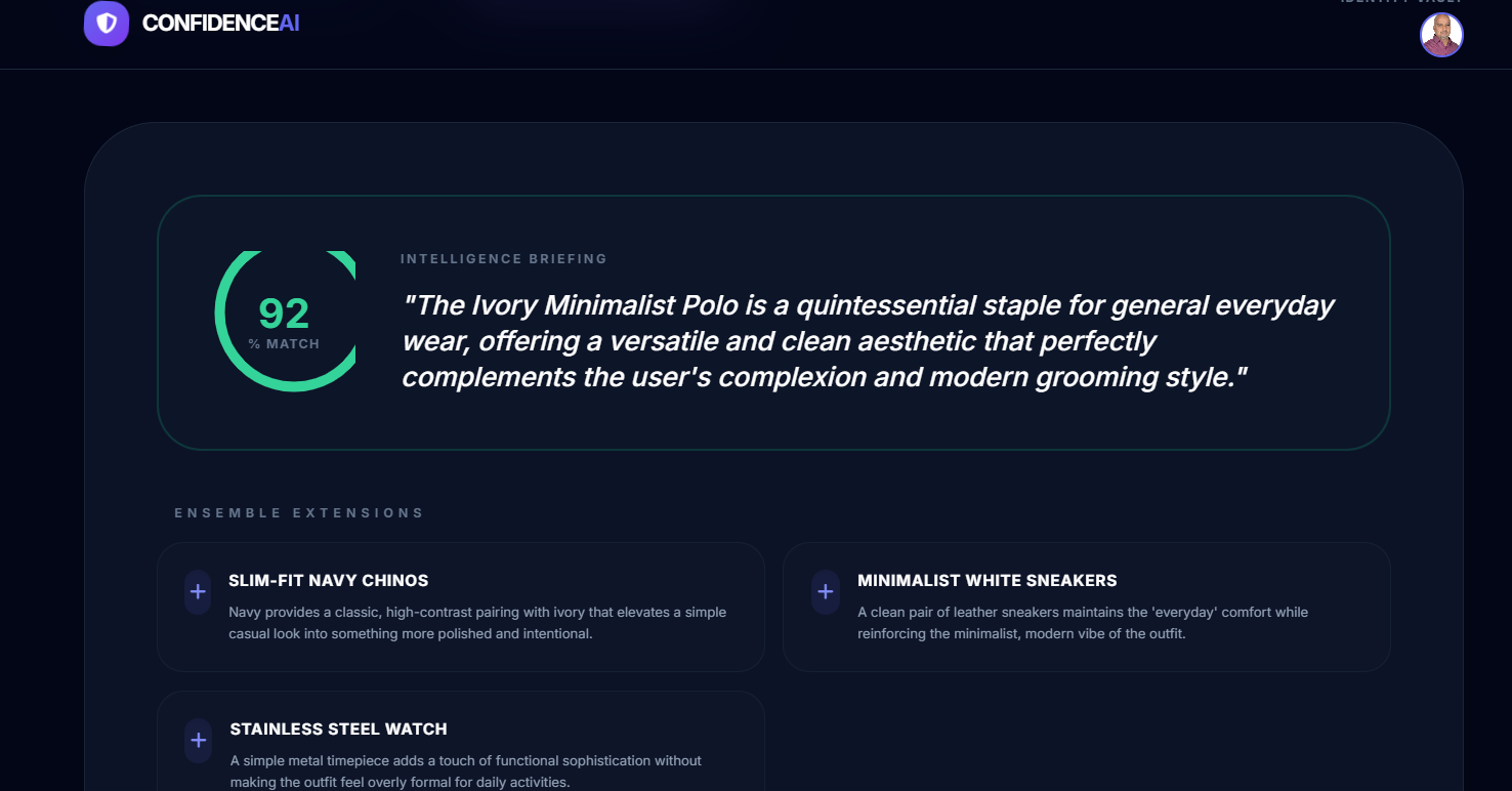 ConfidenceAI is a Gemini 3–powered visual decision engine that helps users make confident purchase decisions. It analyzes a user’s profile image together with product images to assess suitability.