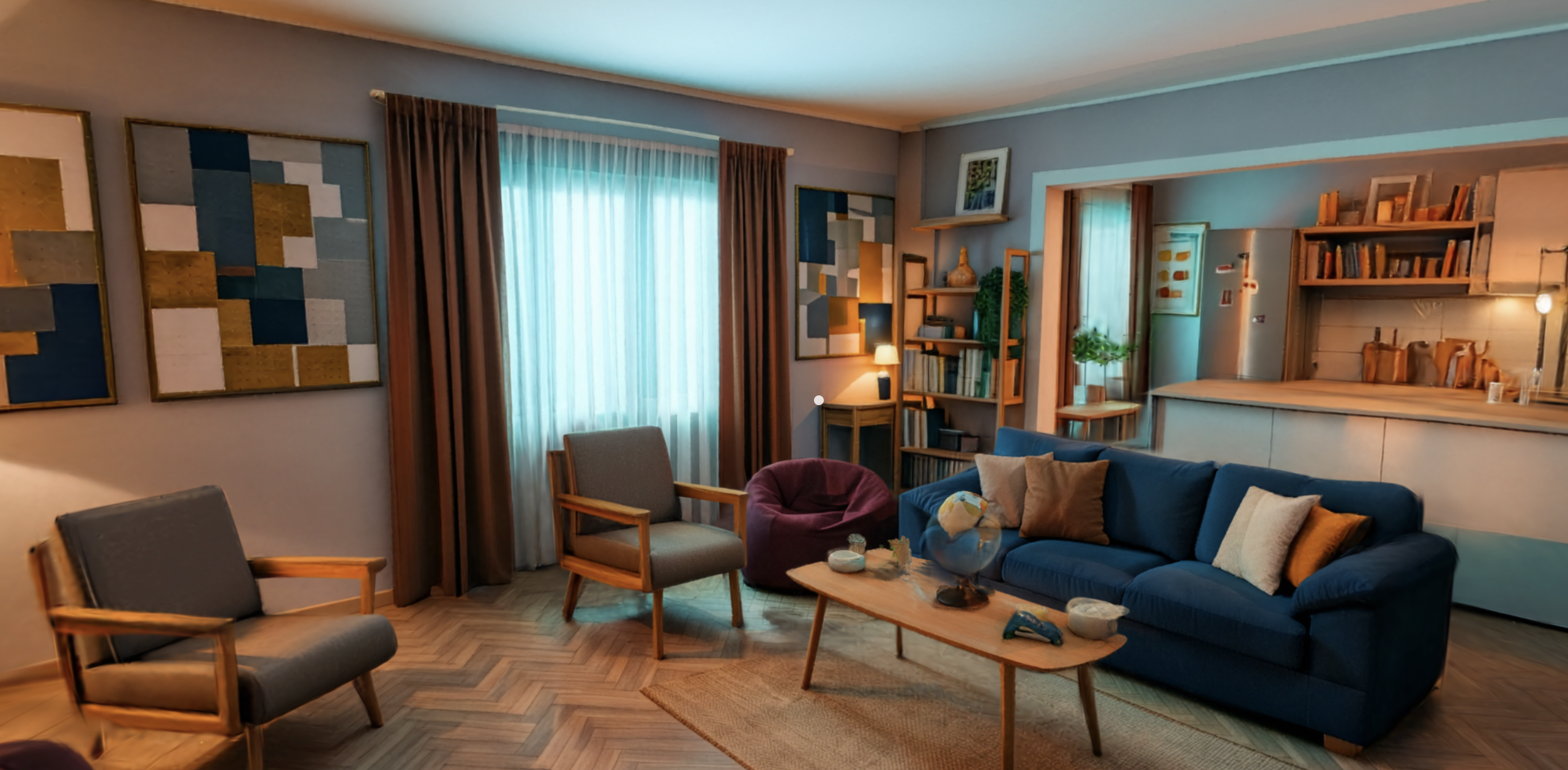 - Converts user intent into a structured world plan (rooms, dimensions, style, lighting, furniture, navigation).