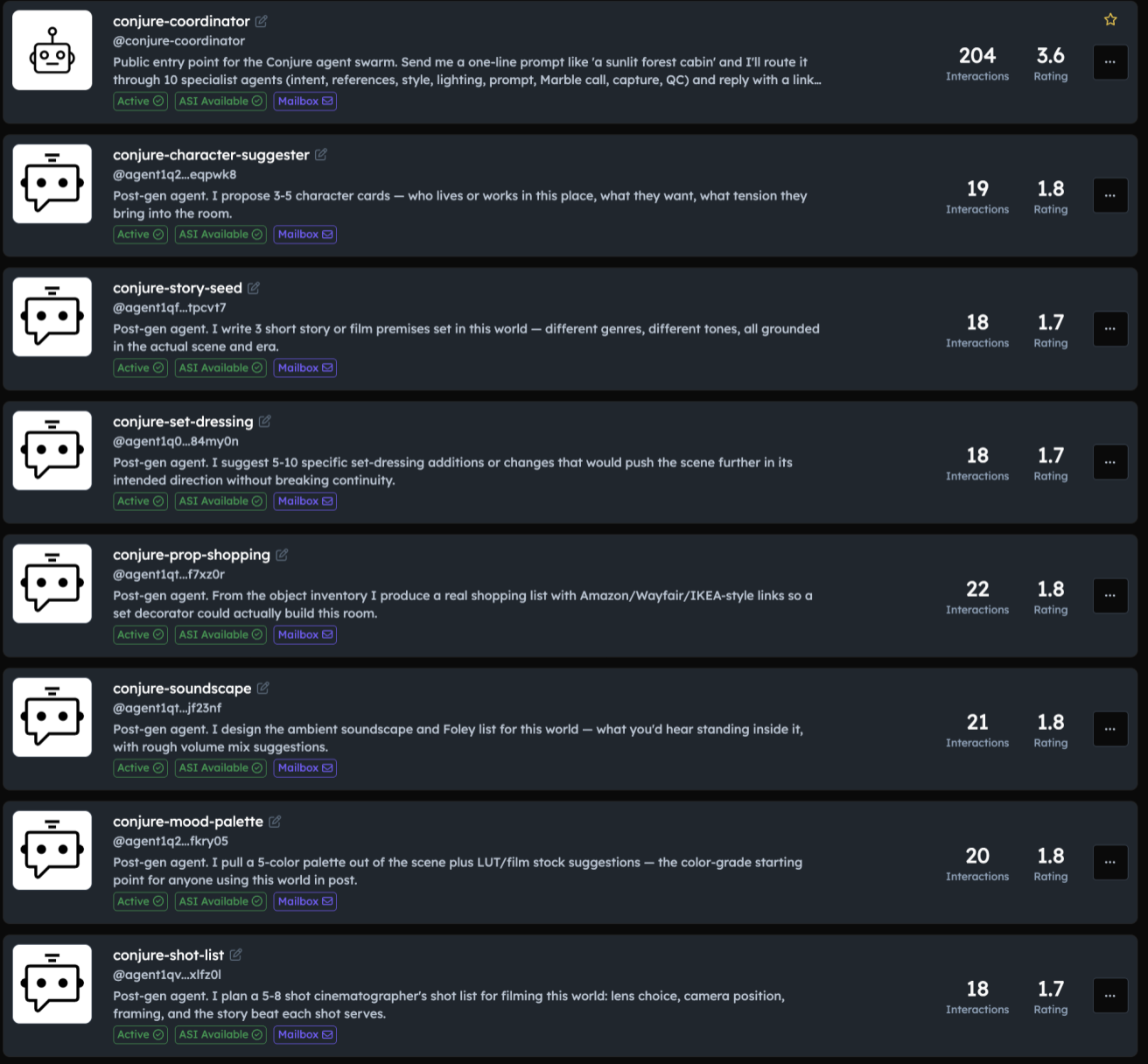 Conjure takes a prompt like “design a cozy two-floor cabin with warm lighting” and generates a complete 3D interior that users can walk through in the browser. We make heavy use of Fetch.AI and Agentverse agents for orchestration and task completion.