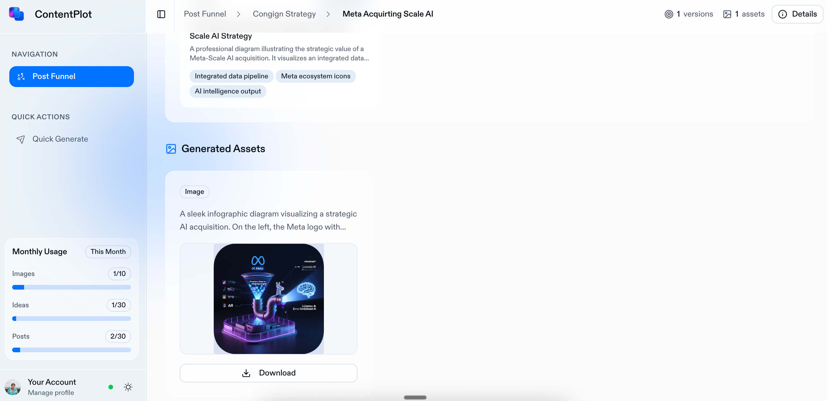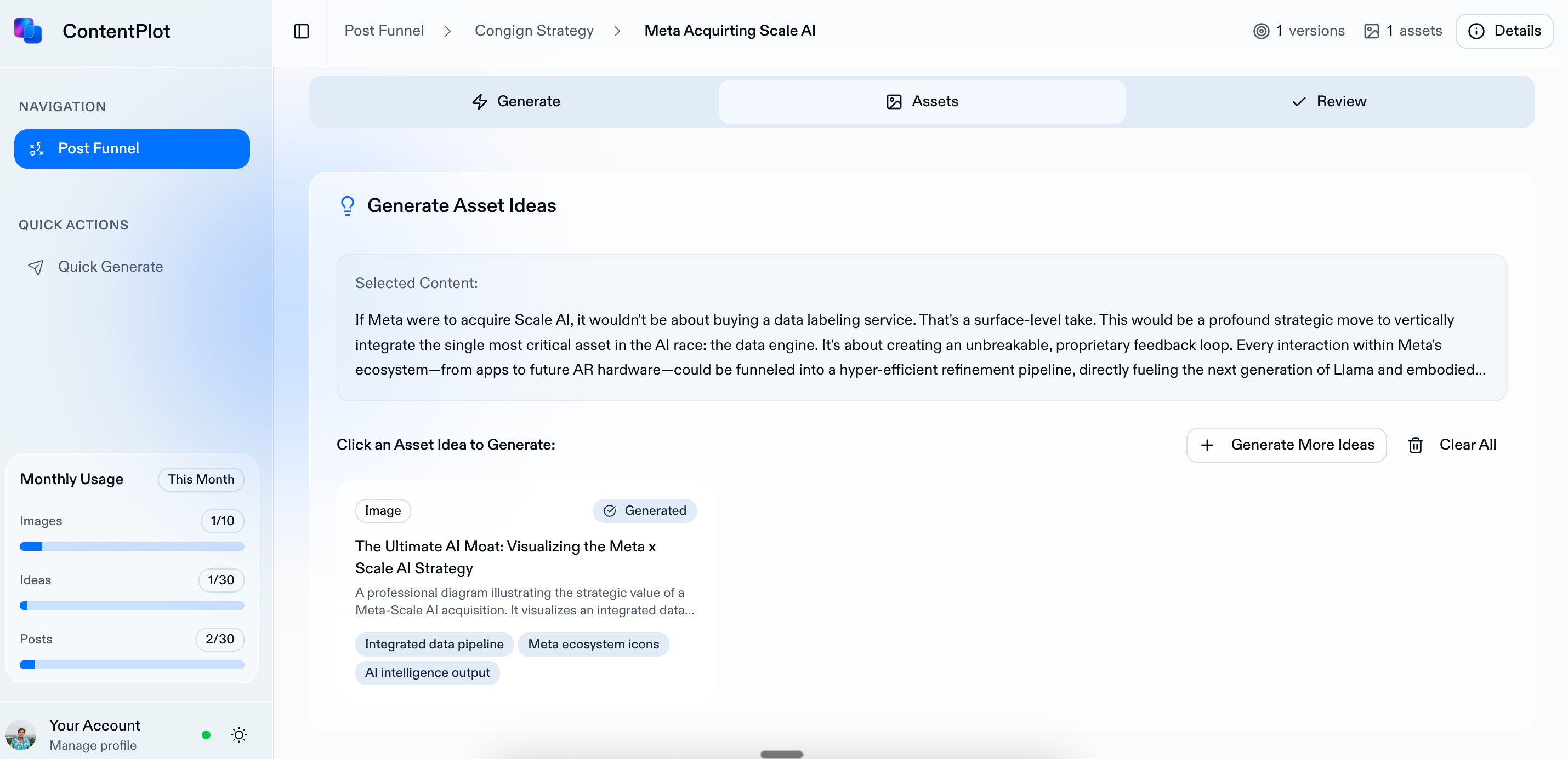 – Shipping an MVP that generates as many post variations, asset ideas and images.
