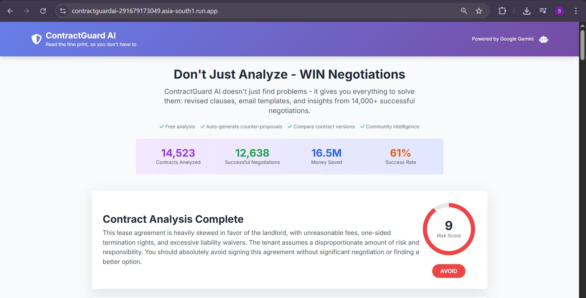 ContractGuard AI was born from a simple mission: don't just tell people what's wrong—give them everything they need to WIN.