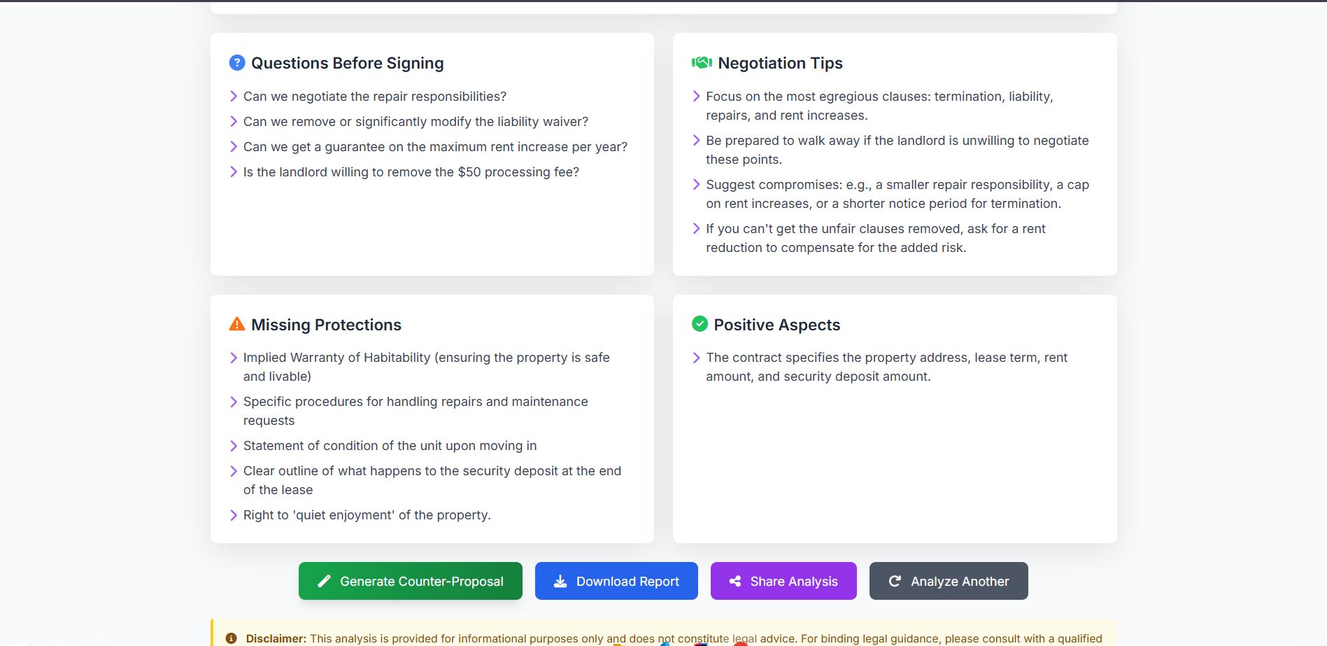 Users get everything needed to negotiate with confidence—no legal expertise required.