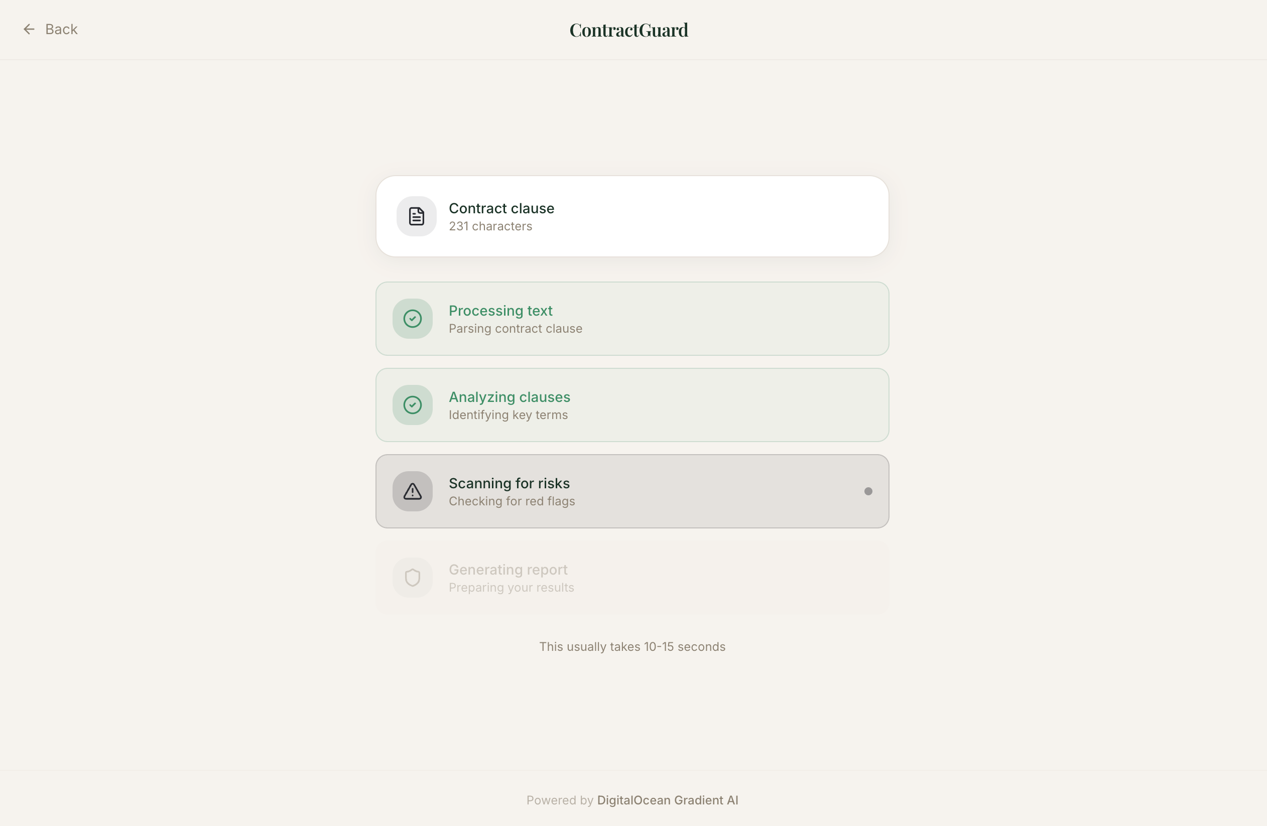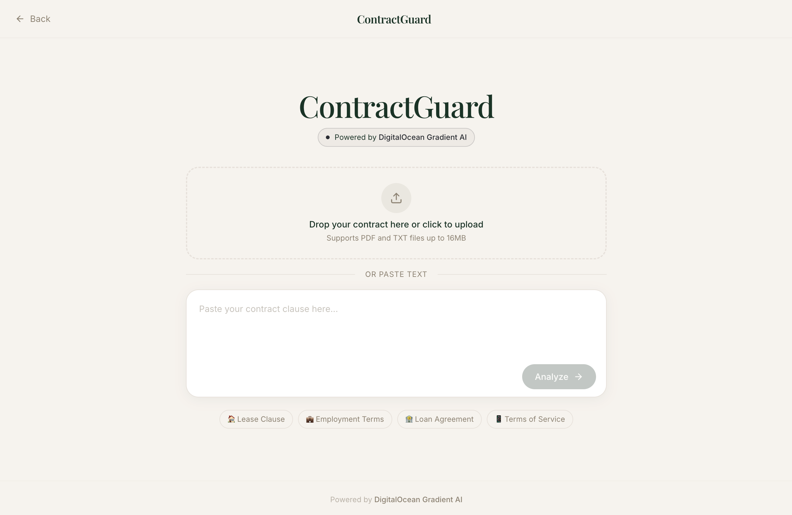 Upload a PDF or paste contract text. ContractGuard will: