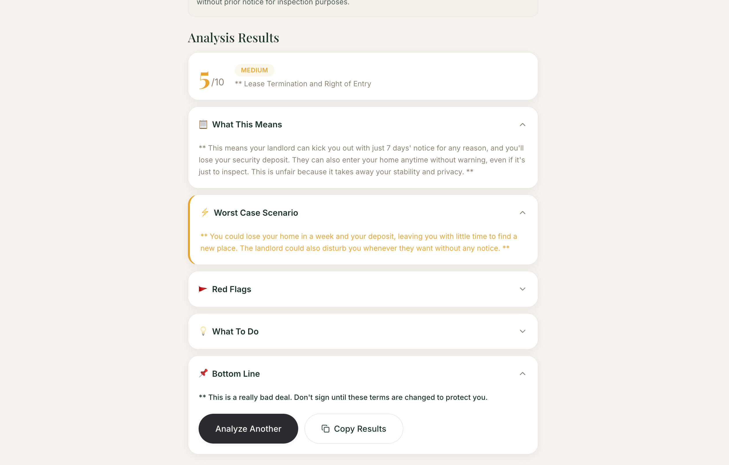 I built a custom knowledge base with 60+ contract examples (leases, employment, loans, ToS) using embeddings for RAG-based retrieval. This helps the AI understand what's normal vs. suspicious.