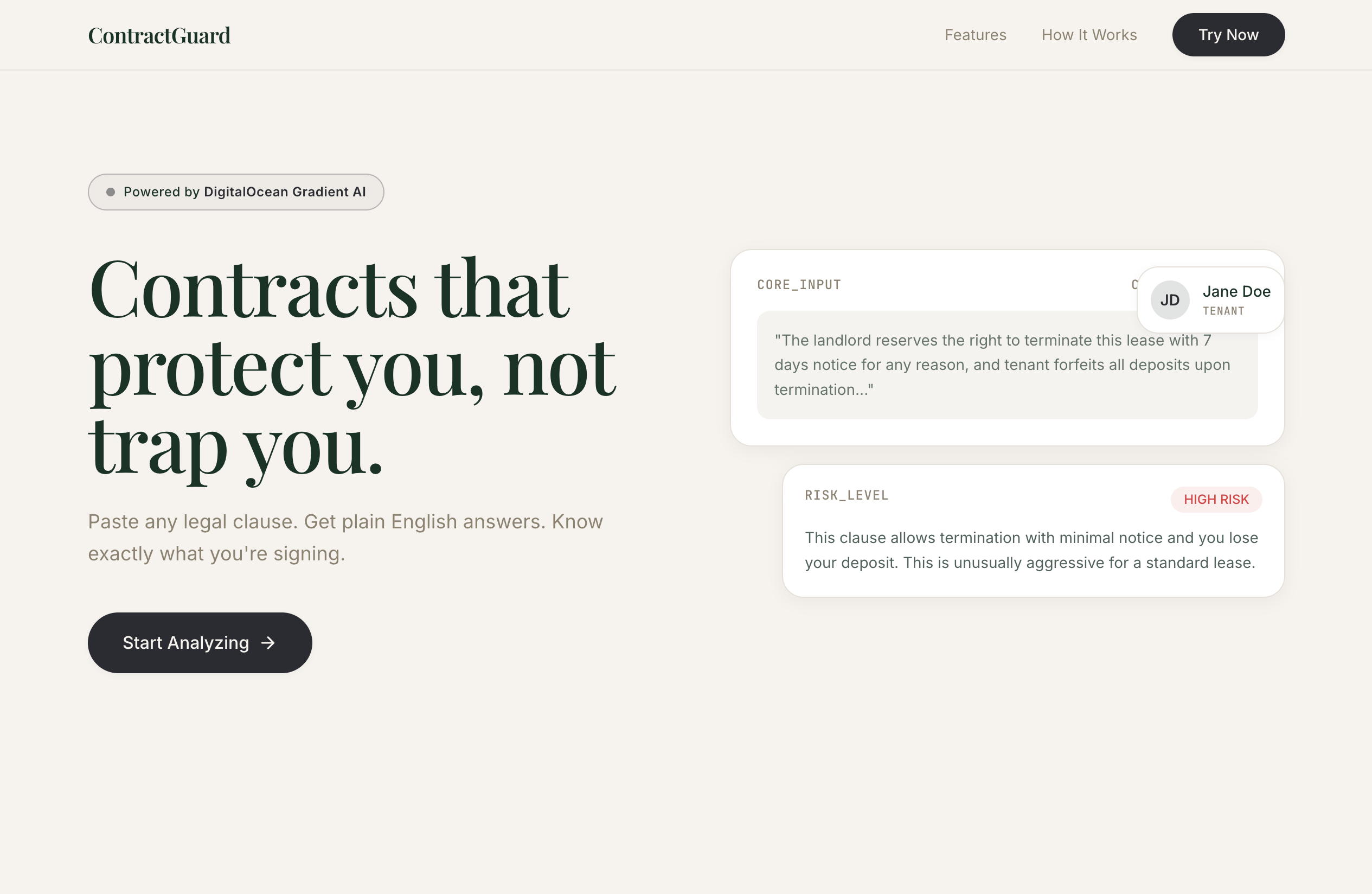 My cousin signed a lease without reading the fine print. Three months later, she got charged $2,000 in hidden fees. 91% of people accept terms without reading them because legal language is confusing and lawyers are expensive.