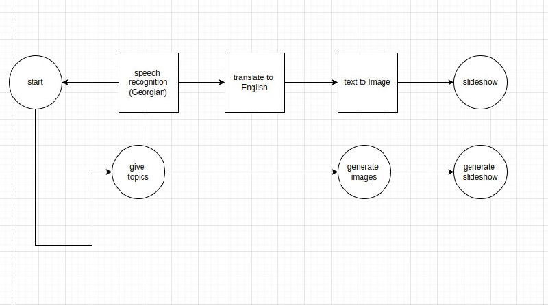 ეს პროგრამა იყენებს ხმის ამოცნობის ტექნოლოგიას თქვენი საუბრის ტექსტად გარდასაქმნელად შემდეგ ამ ტექსტს თარგმის ინგლისურ ენაზე და მიღებული შედეგის მიხედვით გვიგენერირებს სლაიდს(ფოტოს) პრეზენტაციისთვის. პროგრამა გეხმარებათ სწრაფად და მარტივად შექმნათ პრეზენტაციები,როგორც პრეზენტაციის დაწყებამდე, ასევე საუბრის დროსვე.