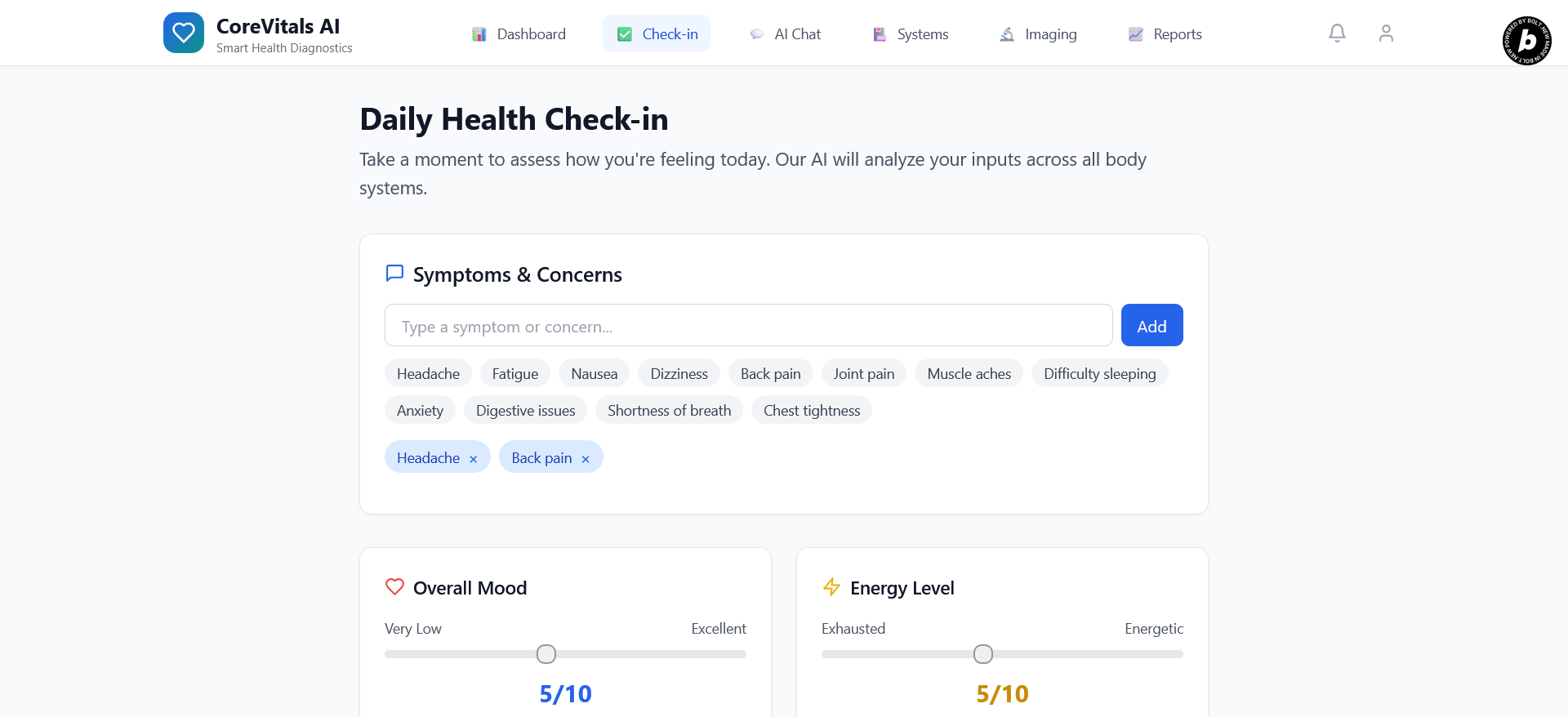 During my university years, I once suffered a sudden health scare—sharp stomach pain that forced me to sprint across campus to a distant medical center. By the time I arrived, I’d missed an important group project. It was a simple issue that shouldn’t have derailed my day, but the barriers to fast, reliable first-aid guidance were real. I built CoreVitals AI so no one else has to go through that.