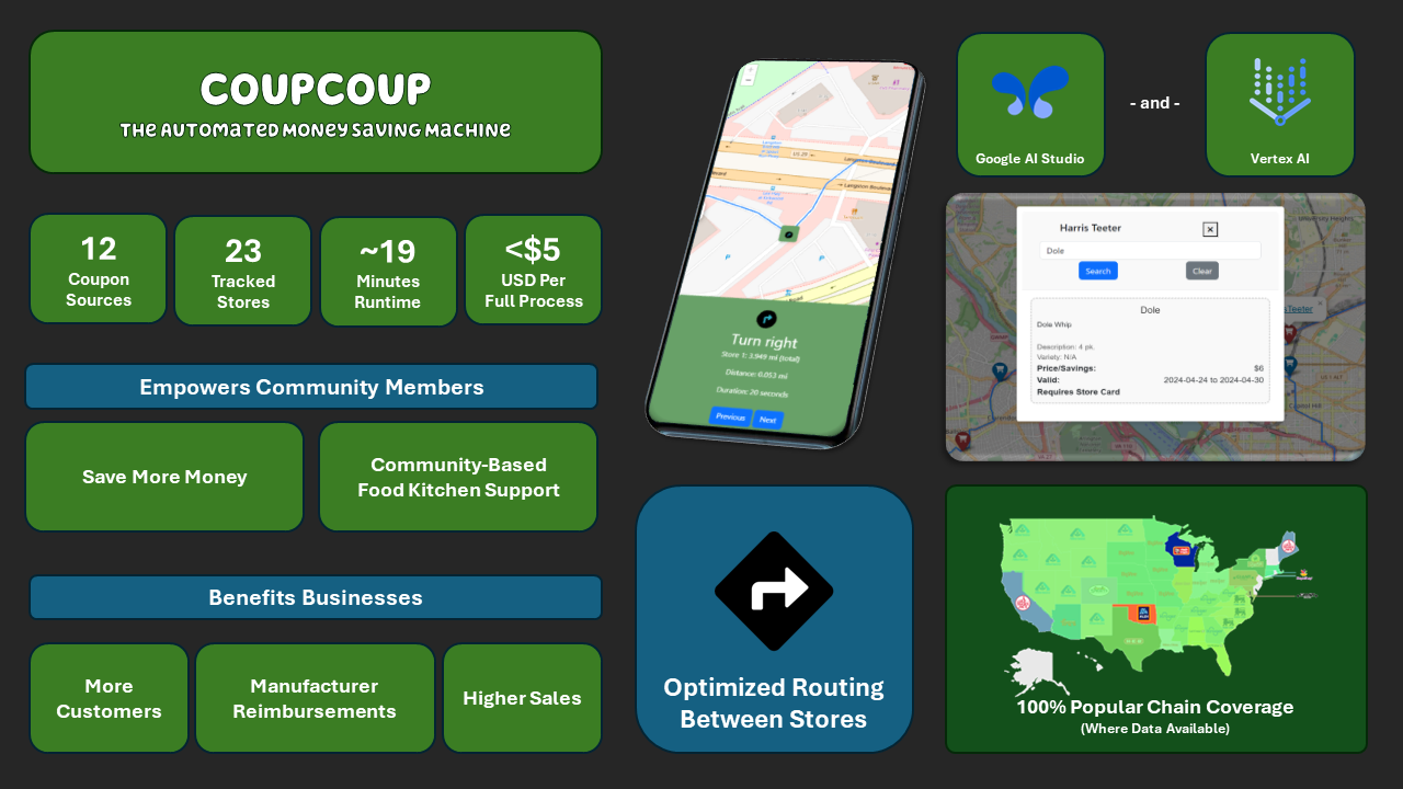 By doing so, CoupCoup is able to cover the most popular grocery stores in 100% of States in the USA (where the store offers an online weekly ad, and accepts coupons)