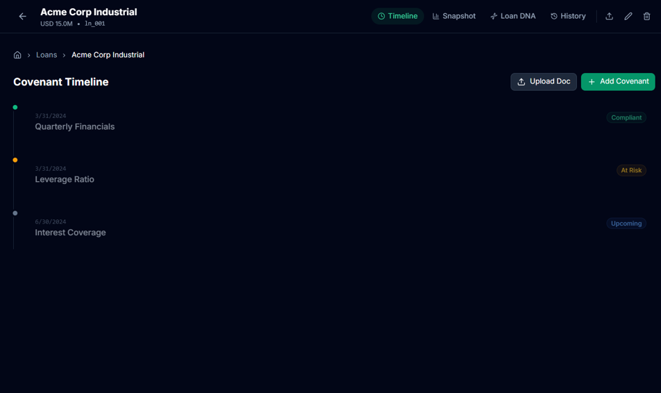 The Three-Layer Mental Model: DNA, Snapshot, Timeline isn't just a technical architecture. It's a new way of thinking about loan monitoring that we believe could change how the industry approaches covenant management.