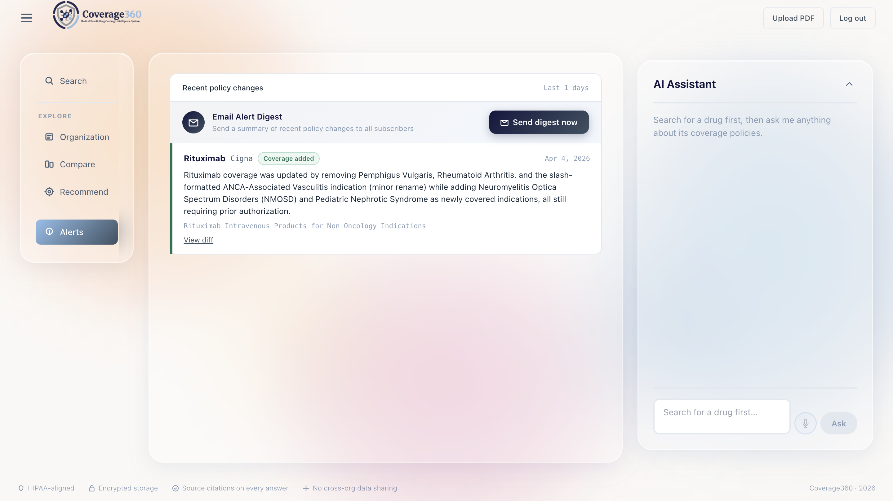 - No centralized system exists to compare coverage criteria, track policy updates, or answer coverage questions quickly