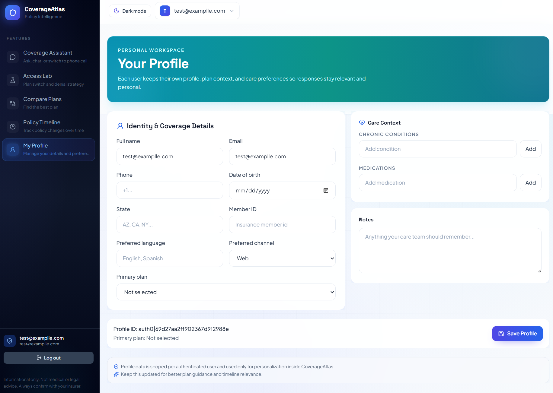 How we built it We built CoverageAtlas with a FastAPI backend, PostgreSQL for structured policy data, and Qdrant for retrieval over policy content. We used Gemini/Vertex-powered AI to extract, organize, and answer questions from policy documents while keeping responses grounded in real evidence. On the frontend, we built a React + Vite experience focused on clarity, trust, and decision support, with Auth0 layered in for secure user access.