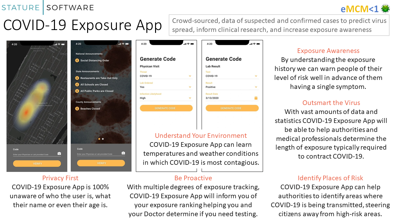 COVID-19 Exposure App address the needs of uninfected / asymptomatic persons, who are practicing social distancing.