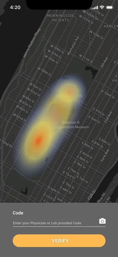 As the app runs in the background, it generates a heat map that shows where the user has been and for how long.