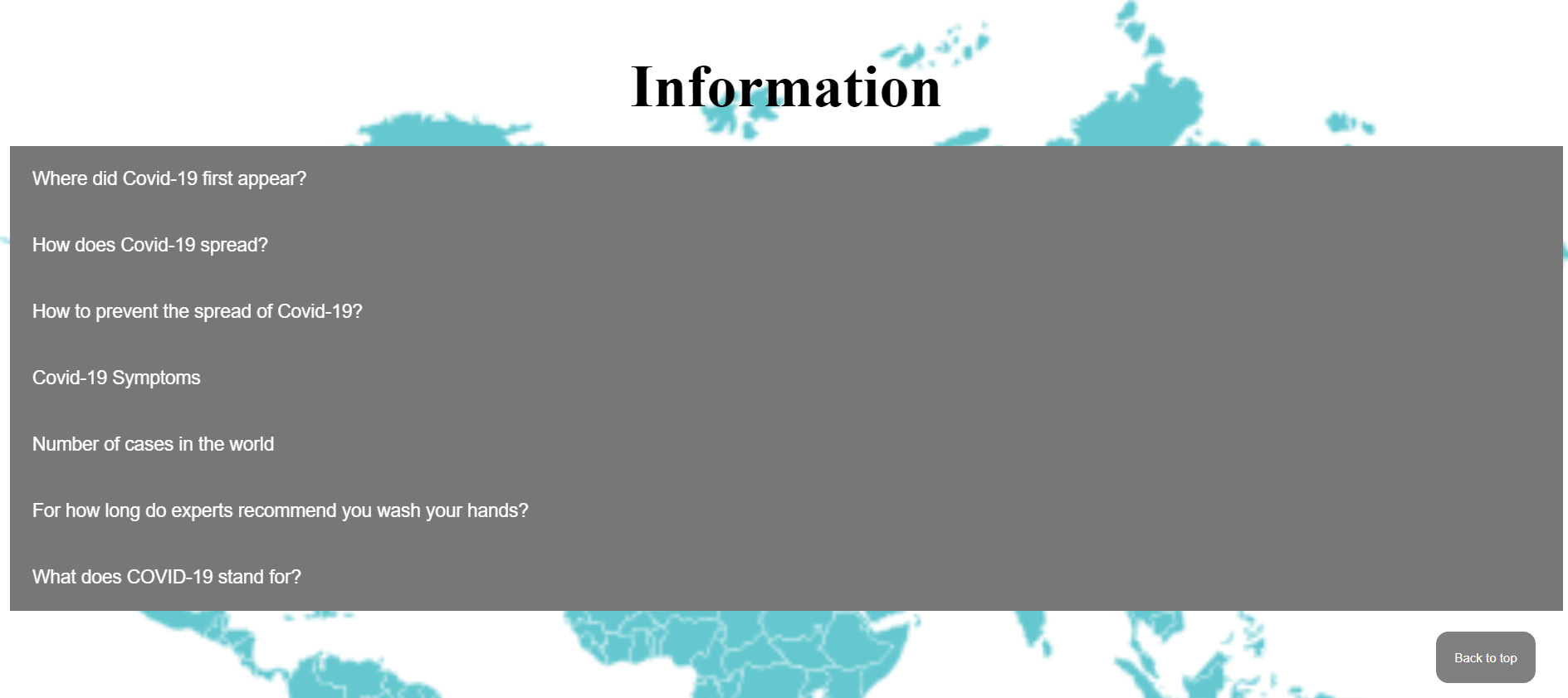 Nowadays, Covid-19 is happening all over the world. We were to make a convenient website access to the status of its exposure, with some knowledge about Covid-19.
