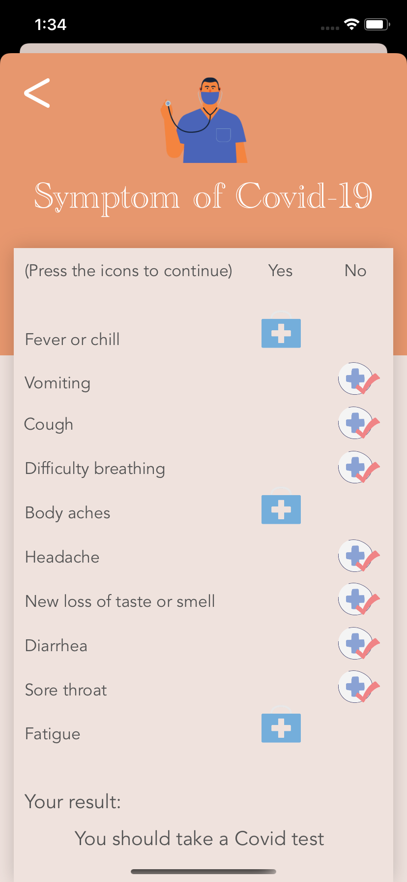 We are proud of the aesthetic look of the website, the map implementation, the health-assessment, and our time management.
