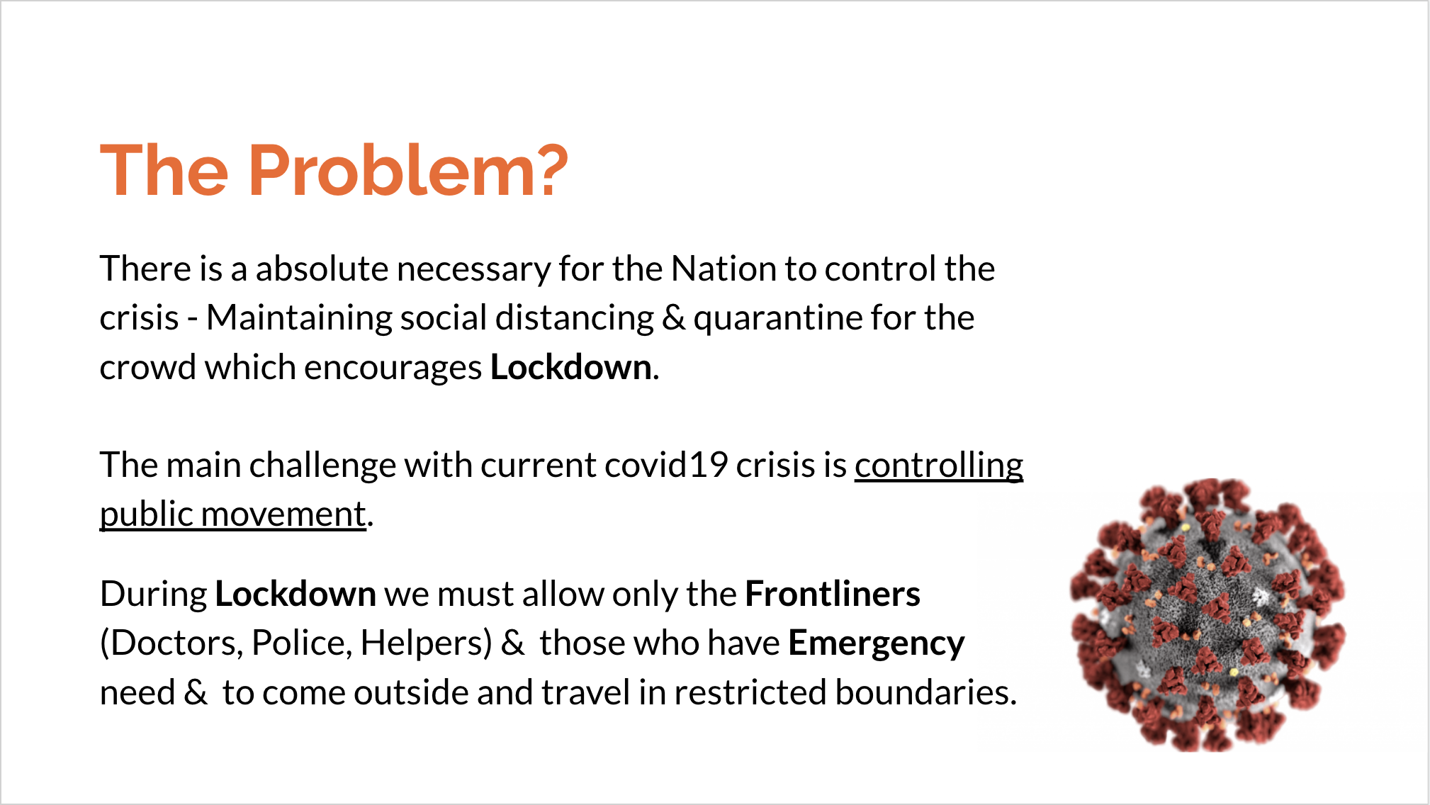 We are aware of the current novel coronavirus (Covid19) pandemic situation which has taken a lot of lives spreading across the globe. As per CDC's (WHO) suggestion, all the countries across the globe are locking down and controlling crowd movement. Social distancing will help flatten the pandemic spreading curve.