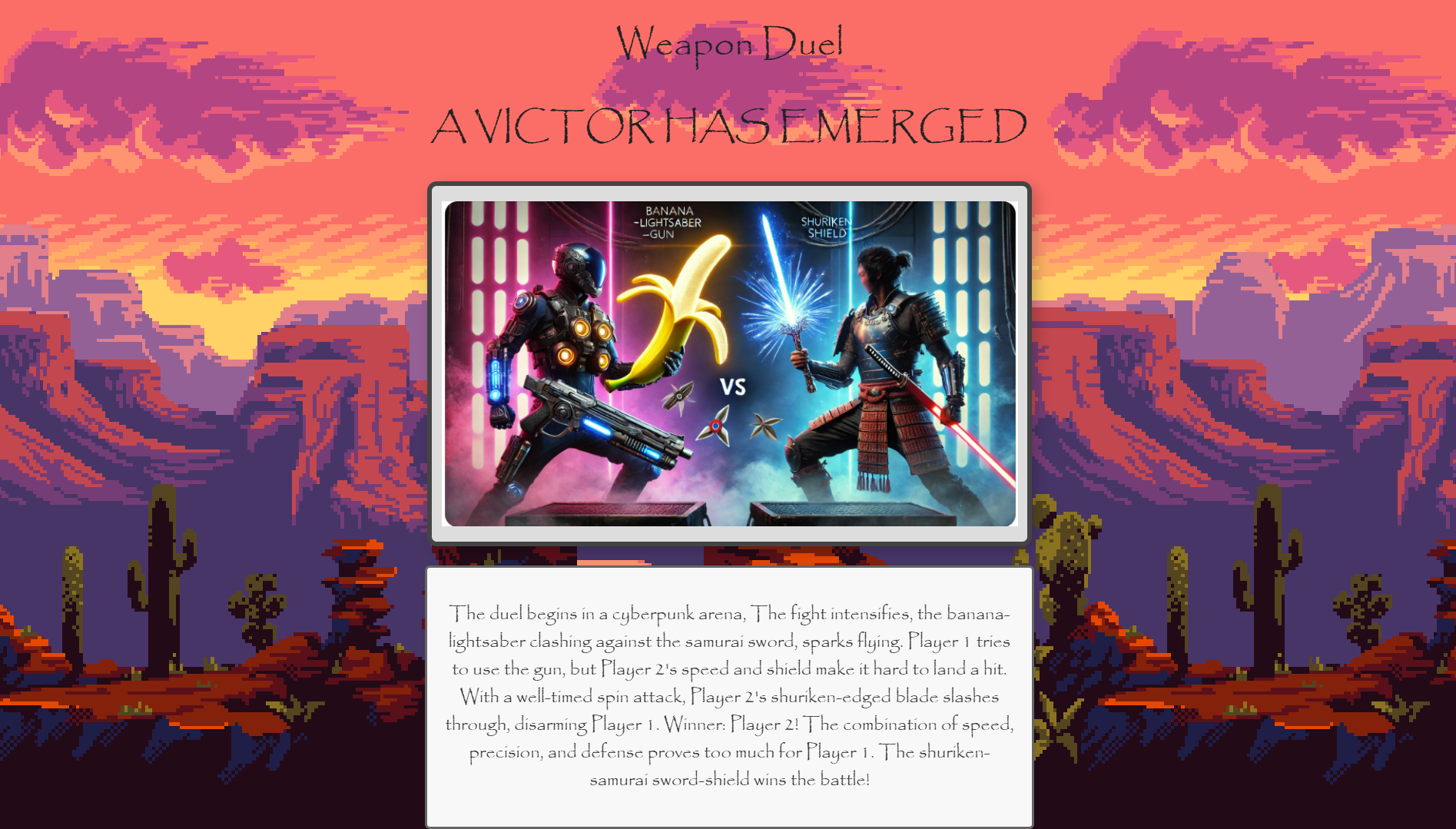 - AI: Uses OpenAI to evaluate and judge the weapons.