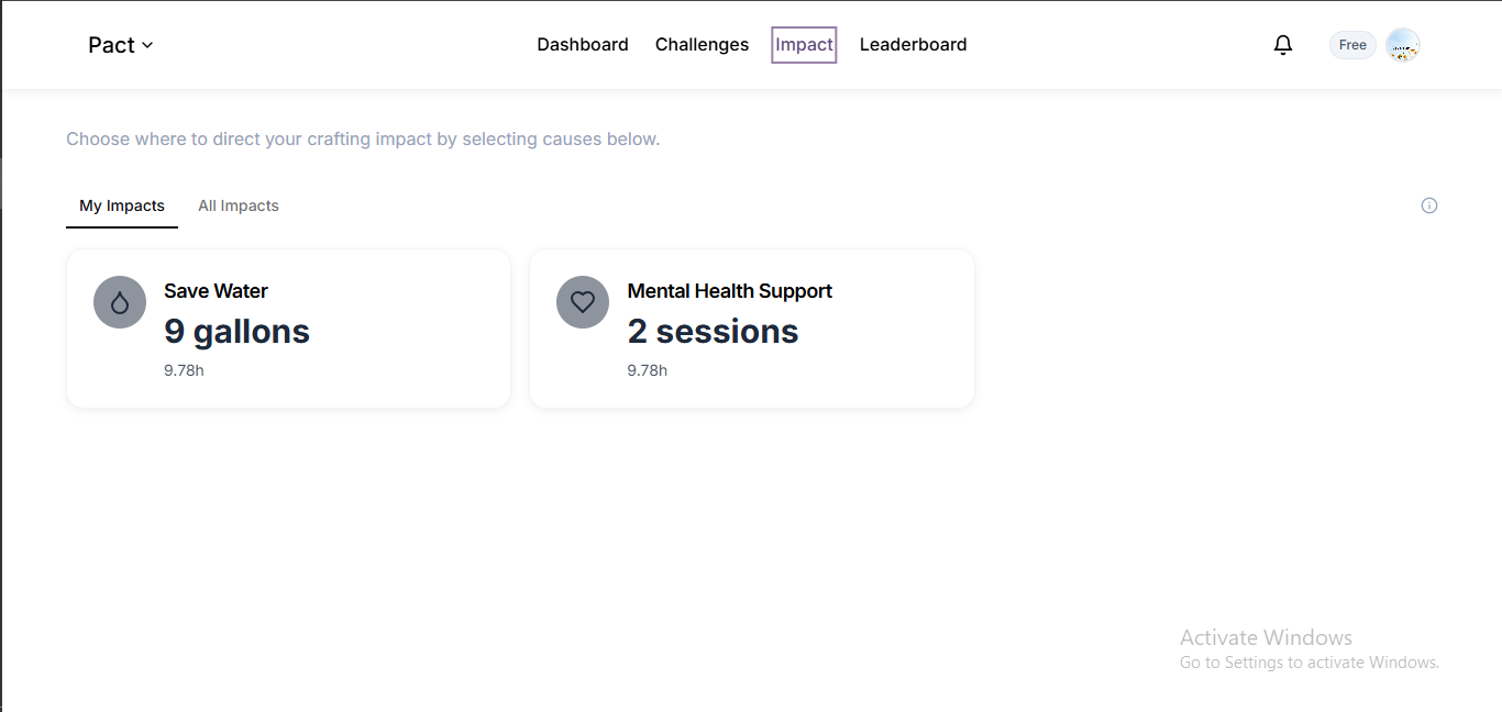 Cralaxia Pact converts your crafting hours into social and environmental impact. By selecting causes you care about — like trees, clean water, or education — your time gets “allocated” to real-world change in a symbolic way. It’s about making your hours feel like action.