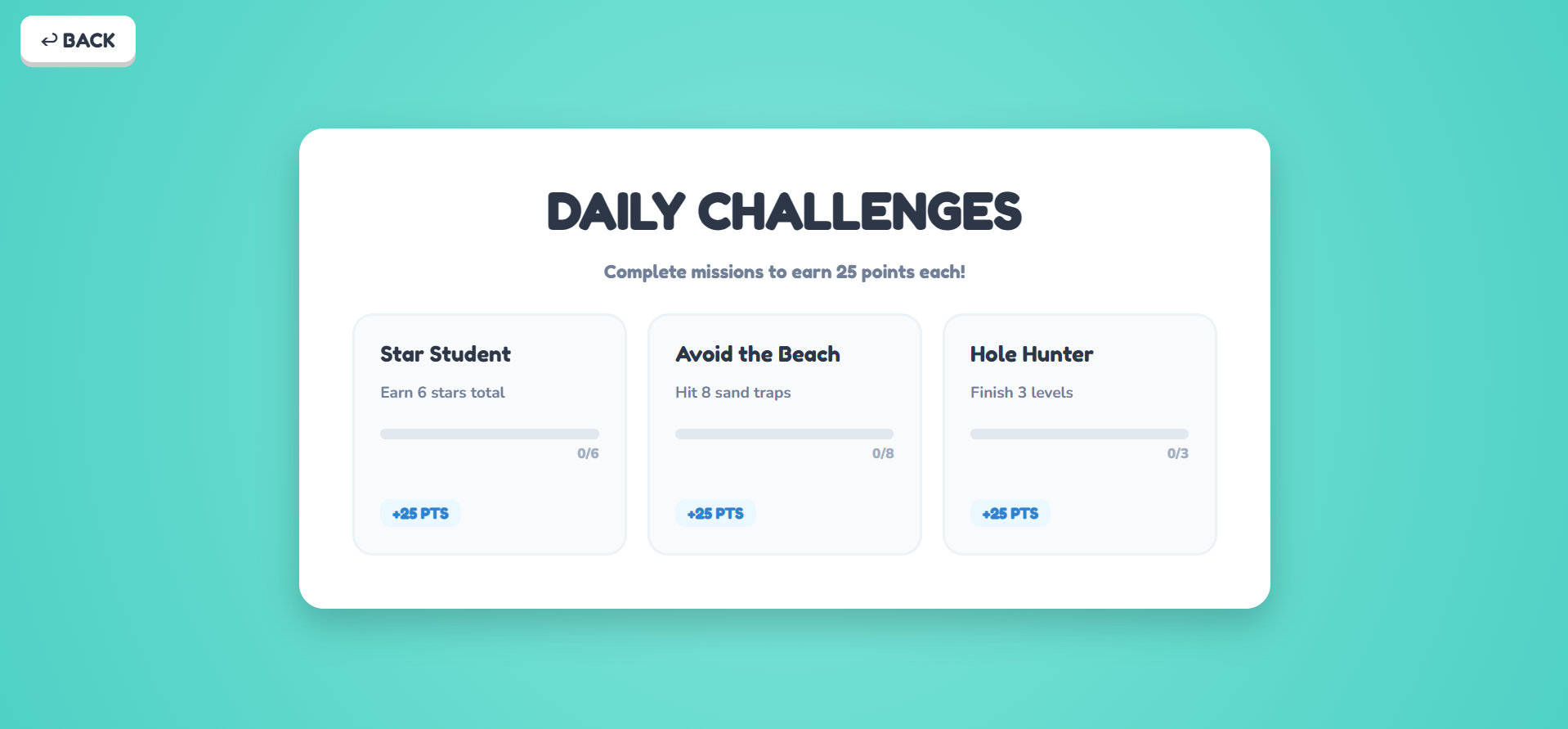 I used plain HTML/CSS/JS with a canvas renderer for the course and physics. Supabase Realtime powers lobbies and turn sync, while Supabase Database keeps scores and unlocks. Missions, rewards, and audio state live in lightweight JS modules so I can stay framework-free.