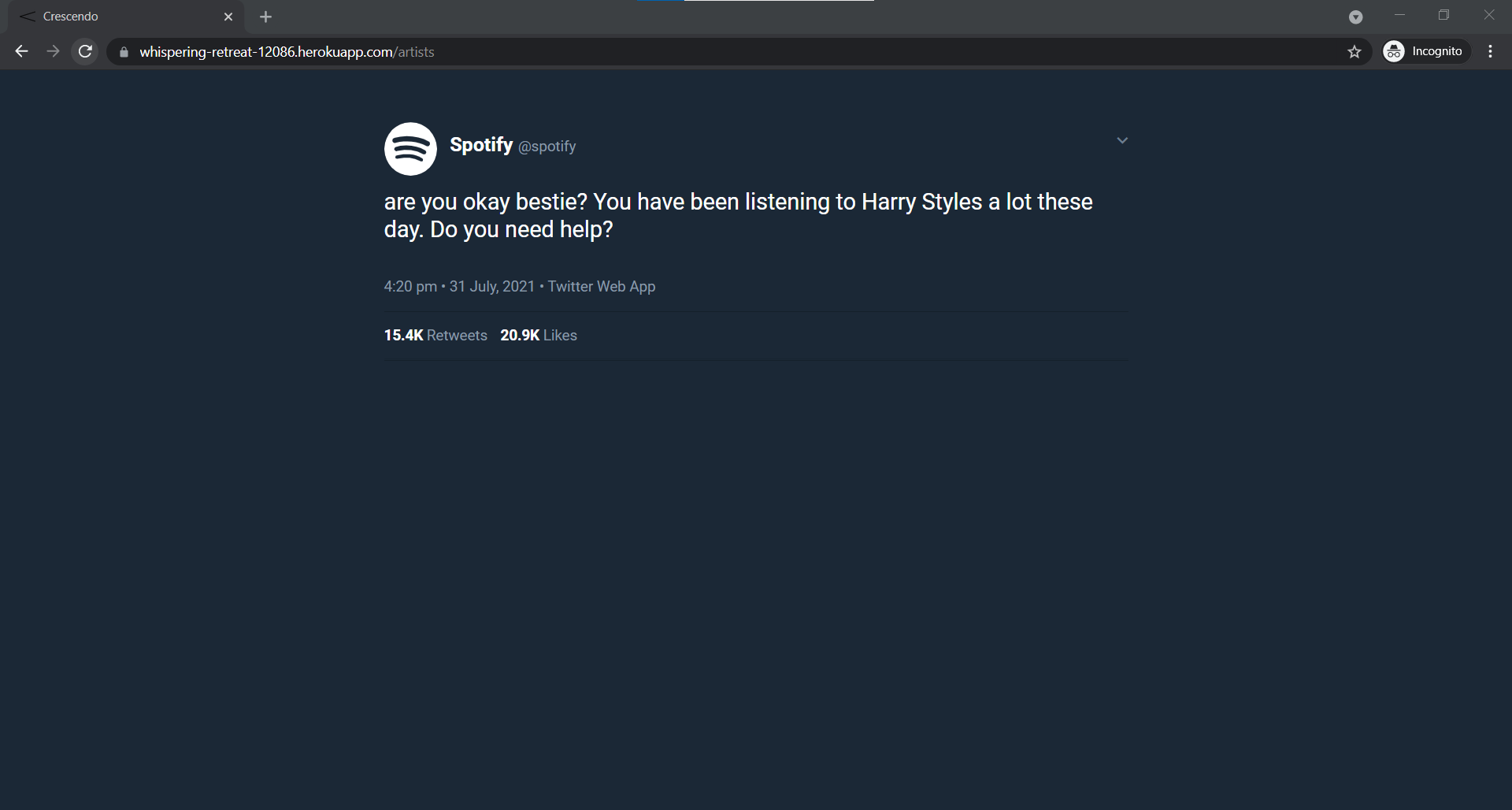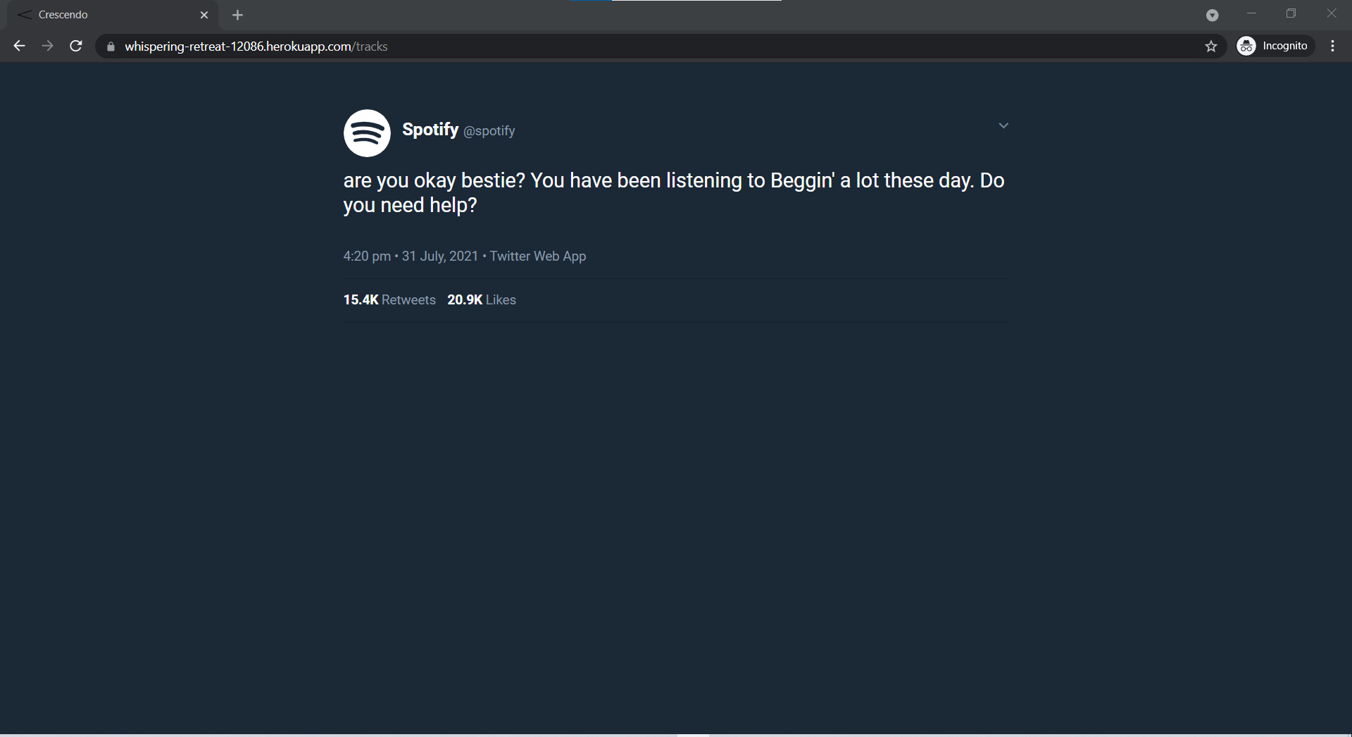 I saw this meme in which there was a tweet which "oh you're listening to this song a lot, are you okay bestie? and that's where it came from.