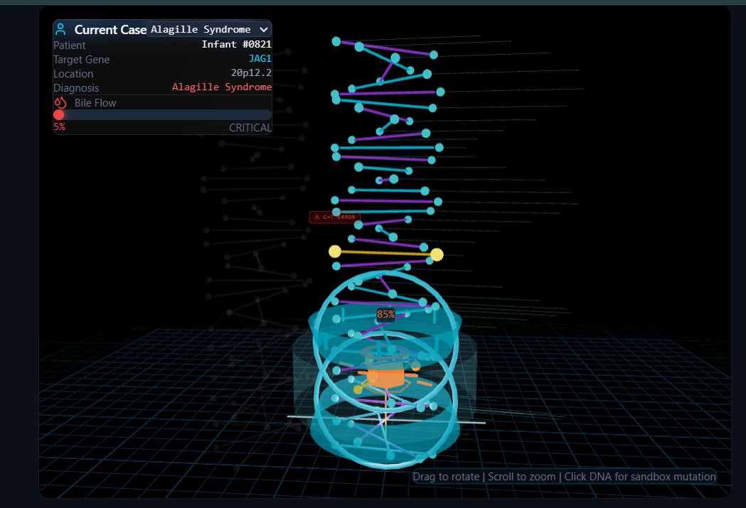 Millions of children are born with genetic diseases that could theoretically be fixed at the DNA level. We wanted to visualize what that actually looks like — making CRISPR technology tangible and understandable for doctors, patients, and investors.